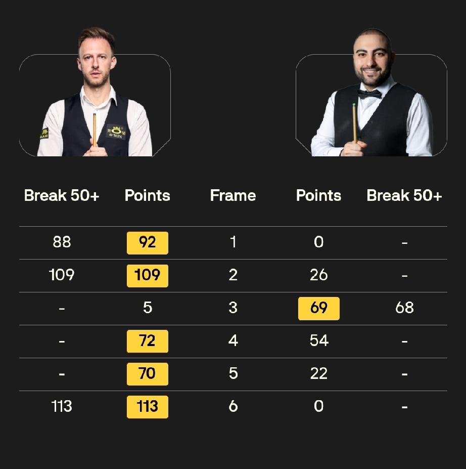 四强产生谁能进决赛? 斯诺克世界公开赛1/4决赛结束了。 下午的上半区1/4决赛双星闪耀!奥沙利文打出单杆153分,创造历史!三杆破百两杆50+,5-0零封瑞恩·戴,晋级半决赛。吴宜泽打出两杆破百三杆50+,5-1击败零封周跃龙的马克·艾伦,晋级半决赛。一老一少完美发挥,充分展现了斯诺克运动的无穷魅力! 晚上的下半区1/4决赛,也是一边倒的局面。贾德·特鲁姆普和塔猜亚·乌努以5-1相同的比分分别击败侯赛因·瓦菲和加里·威尔逊,会师半决赛。 明天下午两点半决赛,吴宜泽挑战火箭,晚上19:30,小特对阵塔猜亚,11局6胜赛制。 谁能晋级决赛?