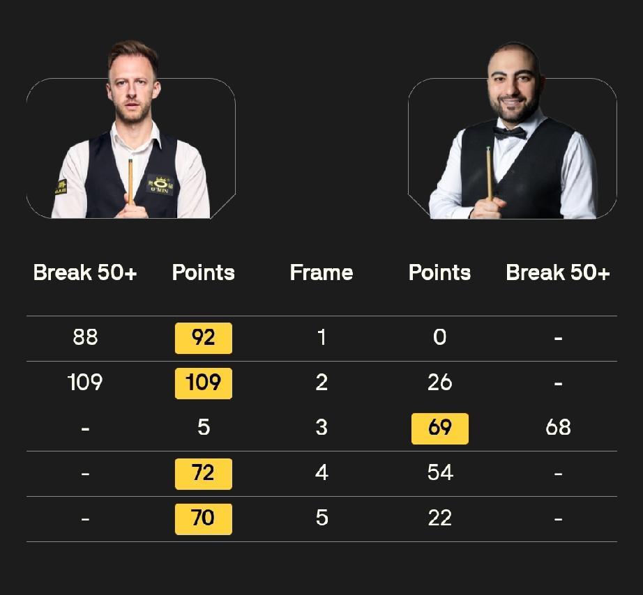 特鲁姆普和塔猜亚晋级四强? 3月20日,斯诺克世界公开赛下半区半决赛,贾德特鲁姆普打出一杆破百一杆50+,4-1领先侯赛因·瓦菲。塔猜亚乌努打出三杆50+,4-1领先加里·威尔逊。 都到了赛点局,特鲁姆普和塔猜亚晋级半决赛应该是板上钉钉了。 明天晚上的半决赛,贾德·特鲁姆普对阵塔猜亚·乌努。
