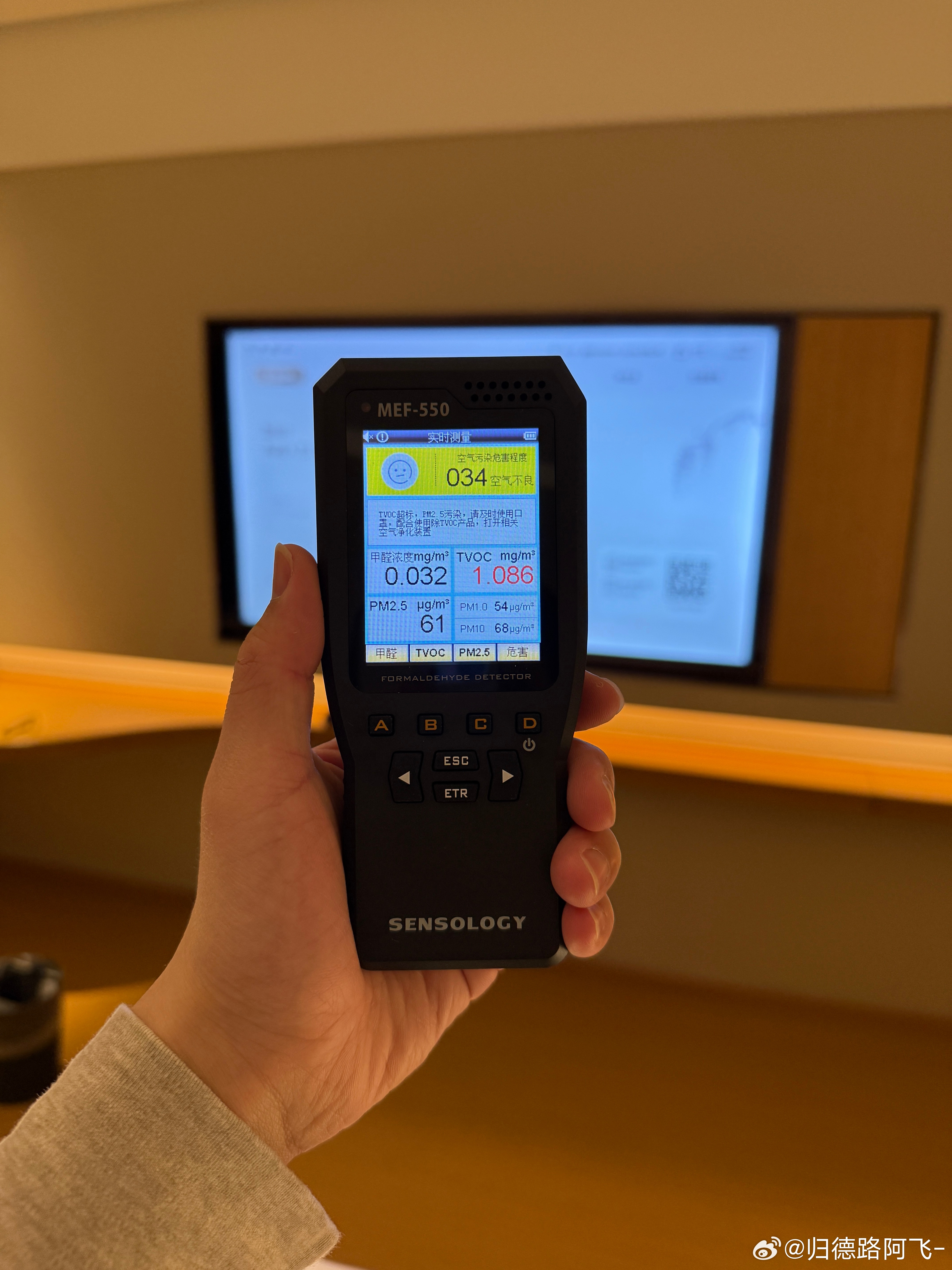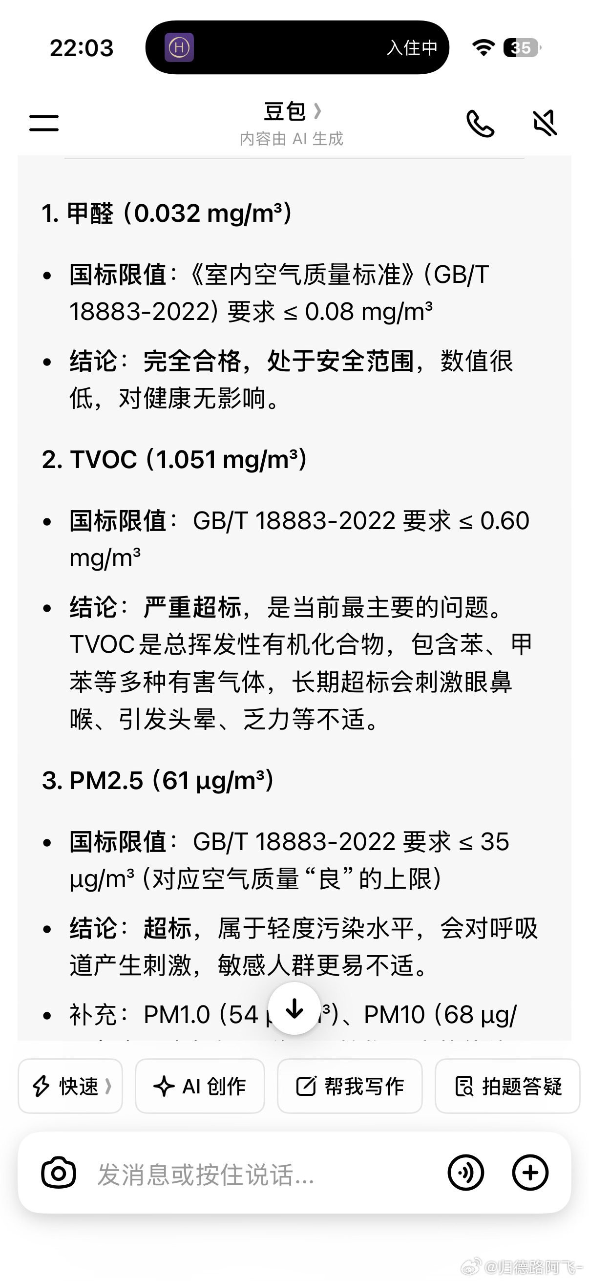 明天拍一个健康座舱的节目,我寻思给设备充个电,结果一开机黄色预警了。豆包说pm2.5和挥发物是有点高的。