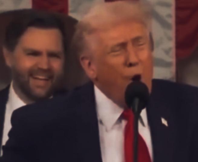 特朗普在讲什么事情呢?表情这么有特点啊! 万斯在后边笑的如此开心啊! 特朗普的表