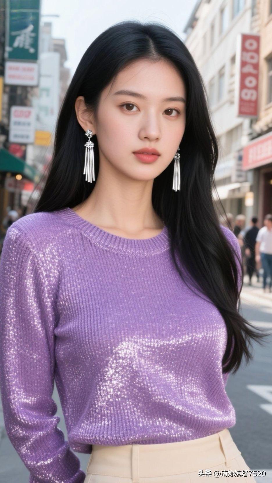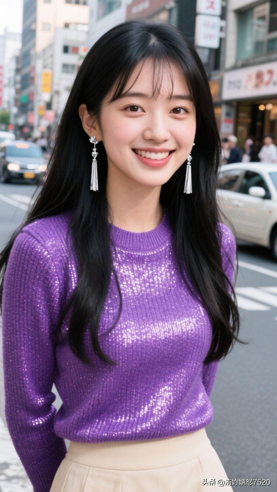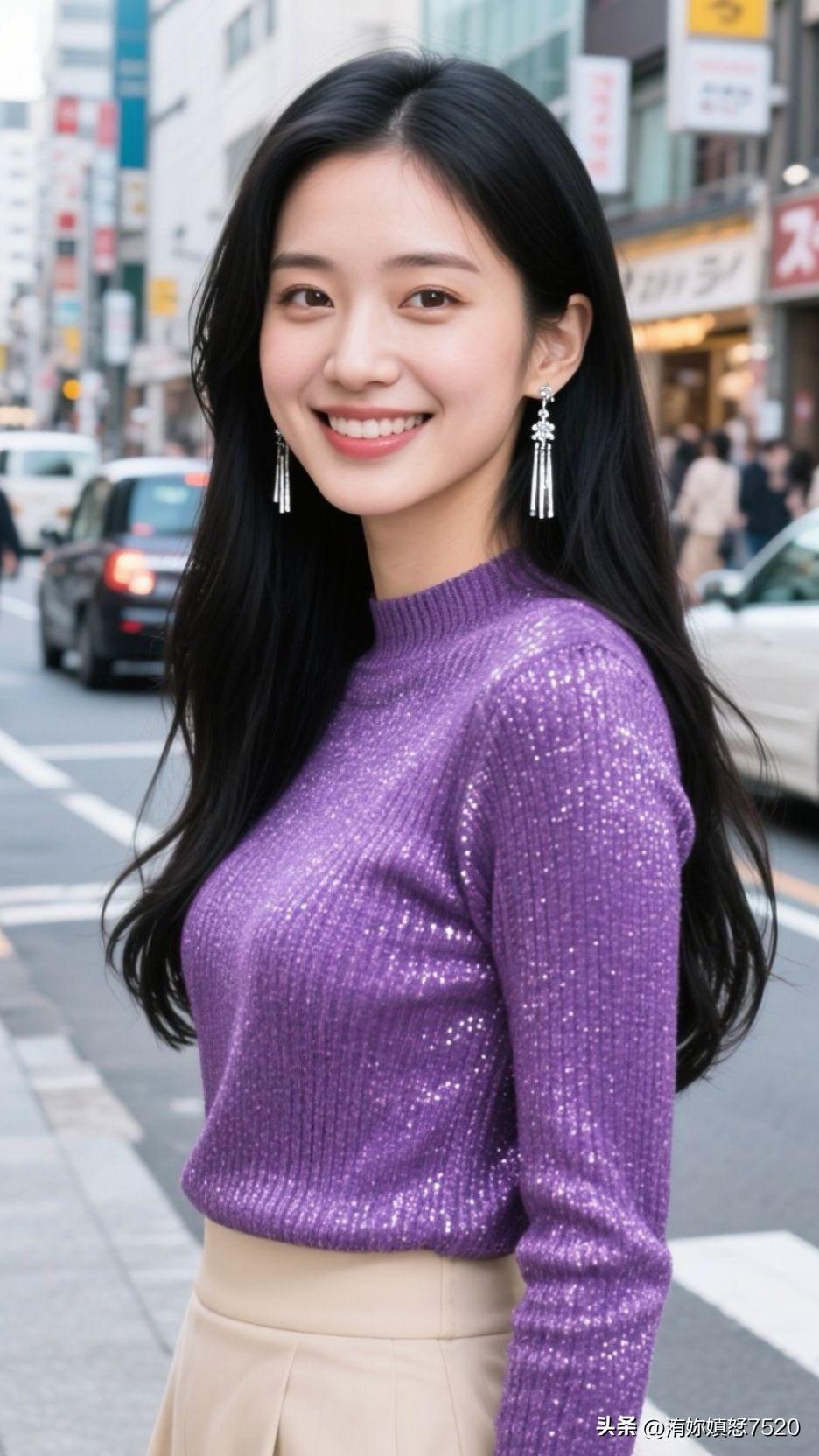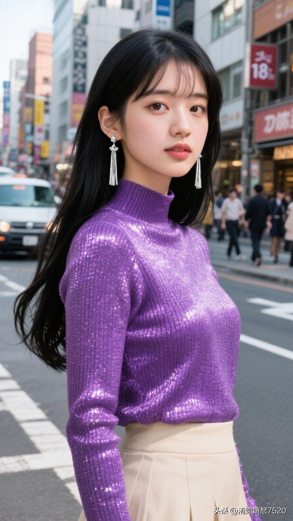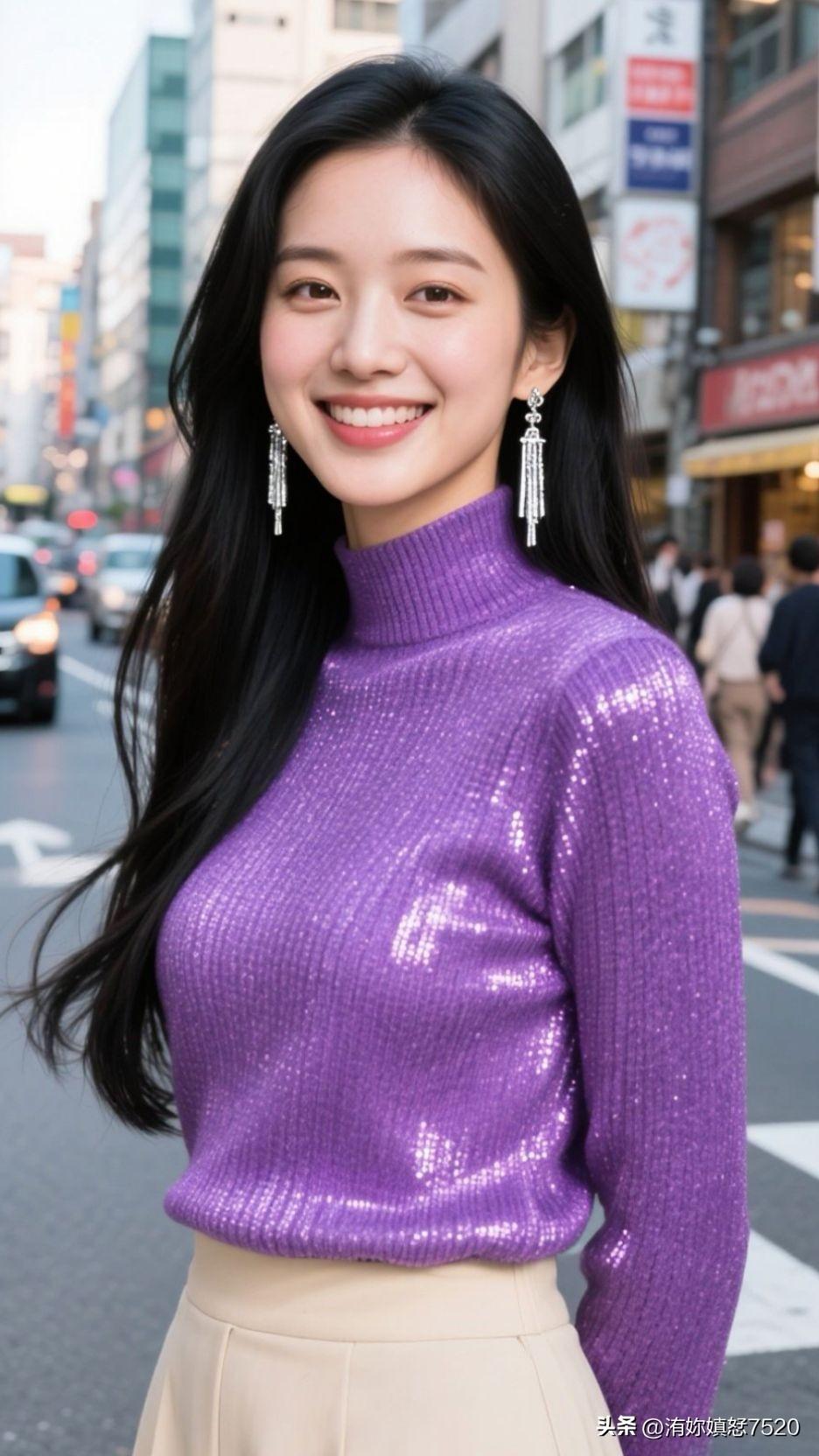 紫色毛衣搭配米色短裙,优雅又时尚!