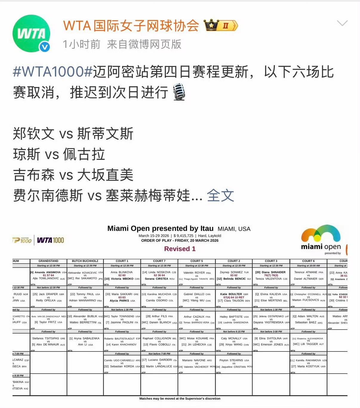 一觉醒来,三位中国球员的结果居然是这样…… 吴易昺2-6/6-7(3)不敌迪亚洛。 郑钦文的比赛因雨推迟到明天。 王欣瑜调换了球场,但还没登场。