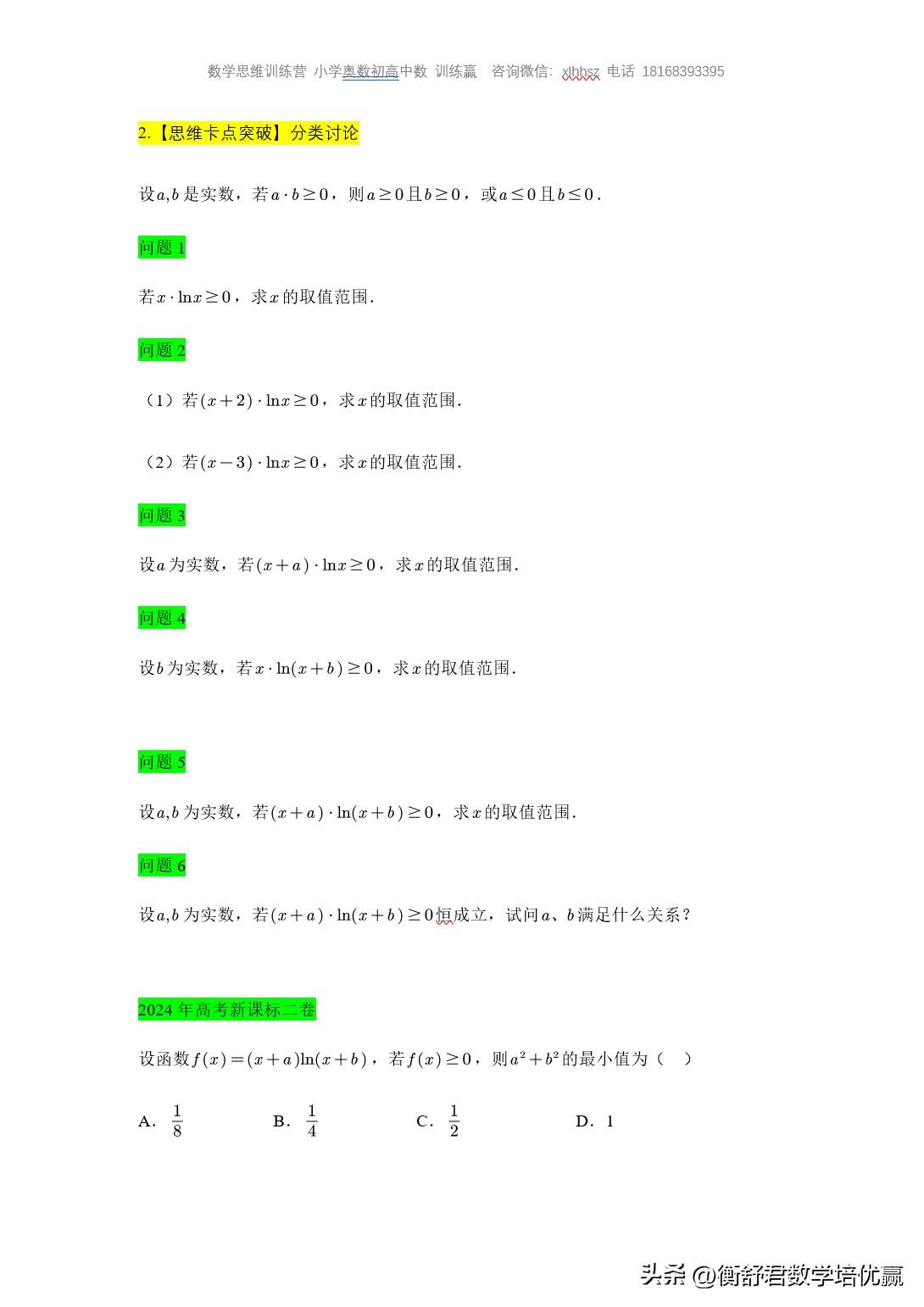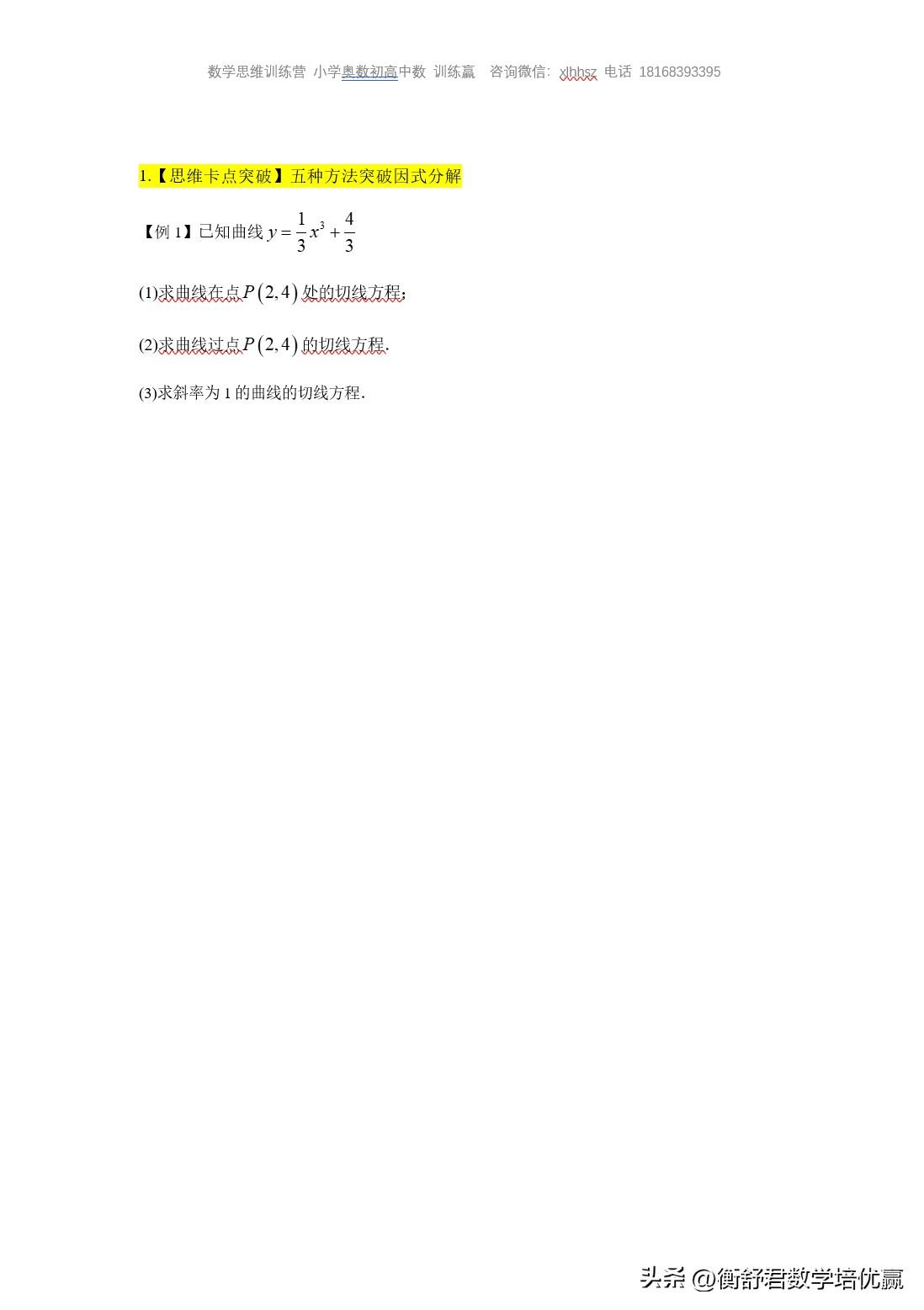 武汉三调,导数题很不错,对基础考查很到位。 今天高二培优就讲这道题。其中重点突破解决这两类题的两大思维卡点 我将采用五种方法突破因式分解,学会这五种方法以后就不在为解不出三次方程而困扰 另外一道课本的基本题型如何变换成高考图题的?重点讲解分类讨论的卡点问题,为什么进行分类讨论?怎么进行分类讨论?分类讨论的原则是什么?
