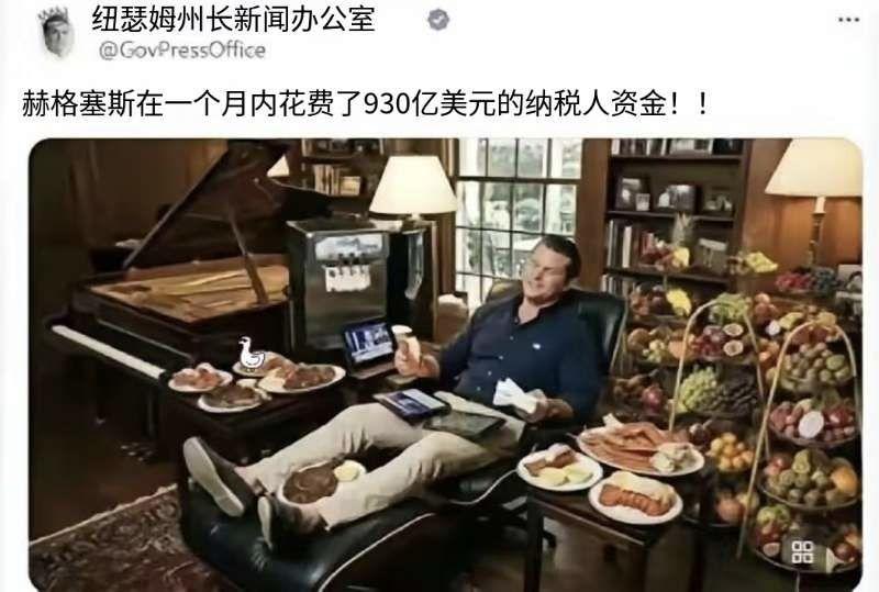 加州州长纽森办公室发布推文,只有一幅图片和一句话(如图):“赫格塞斯一个月内花费了934亿美元的纳税人的资金!” 从配的图片来看,讽刺赫格塞斯和他的军队天天龙虾帝王蟹,挥霍无度!这样看来,美国人也看不下去了。