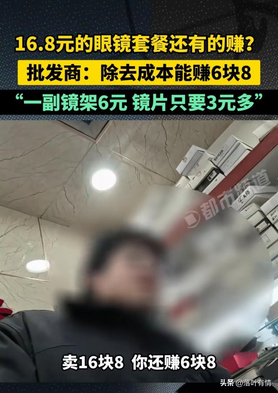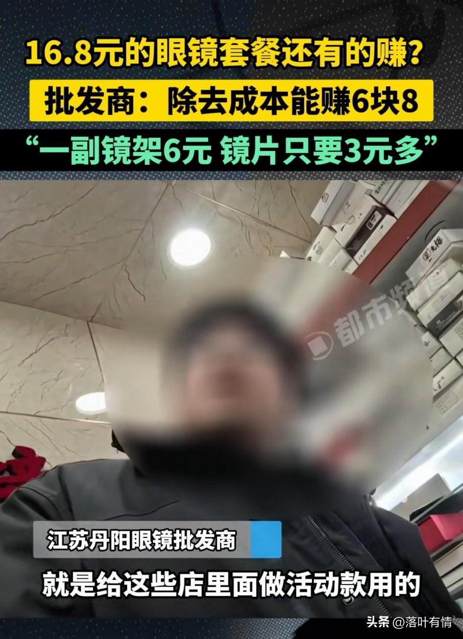 一副16块8的眼镜, 你觉得能赚多少钱? 答案出乎你的意料, 这么便宜的眼镜居然还能赚六块八, 这种眼镜一般都是商家做活动用的, 记者深入调查之后发现, 这种眼镜批发价镜框也就6块钱, 镜片只要3元多, 眼镜布和眼镜盒2元, 一套算下来成本之后, 卖16块8,还能赚六块八, 是不是很出乎你的意料? 实际上眼镜这一行很暴利, 镜框和眼镜都不贵, 但是在眼镜店就非常的昂贵, 特别是在批发市场, 可以买到非常划算的眼镜, 大家觉得为什么眼镜店还要卖那么贵呢? 眼镜控 买眼镜小技巧 眼镜排行 眼镜店镜片度数 镜片进货价