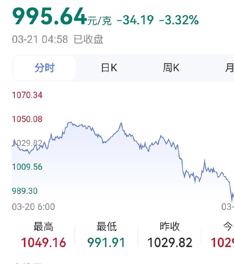 美国股市暴跌,黄金大跌,石油大涨。 昨晚美国三大股指大跌,纳斯达克跌了超过400点。黄金也跌破了1000元,收在995,终于又看见了三位数。原油价格大涨,布伦特原油站在了112每桶。 这个周末很多人日子不好过啊。 纳斯达克 美股断崖式下跌 大盘黄金走势