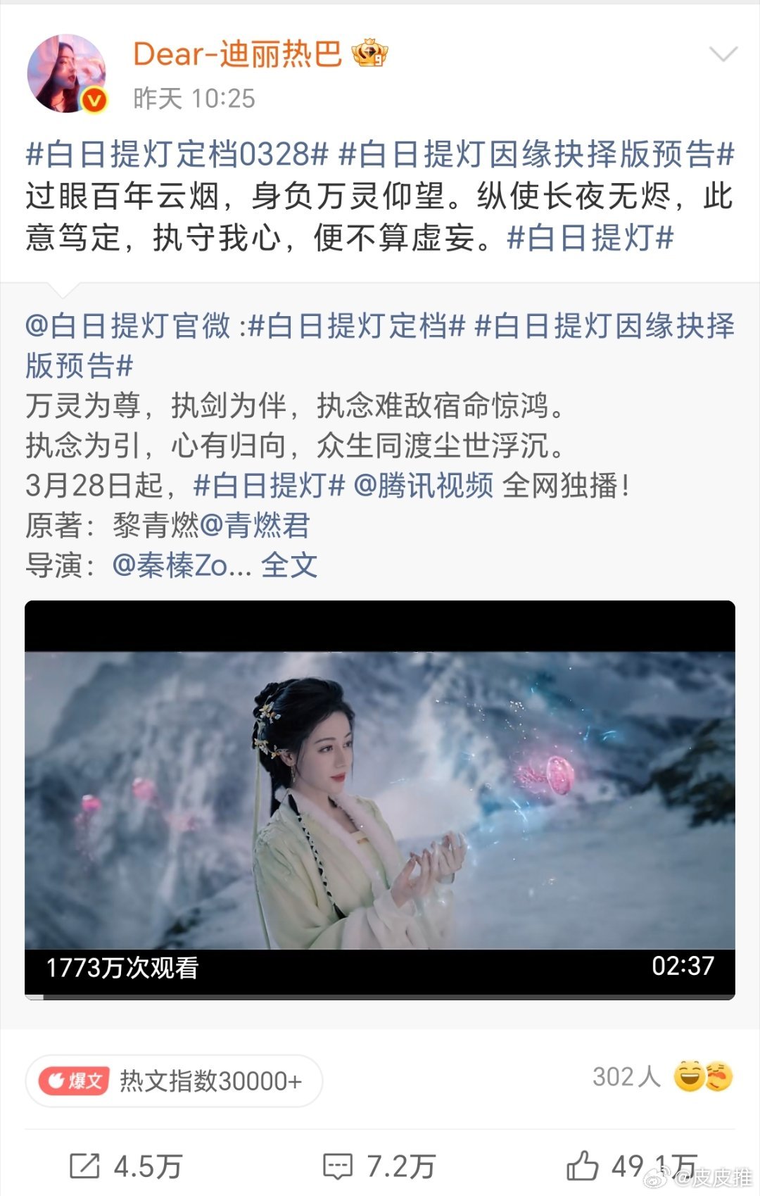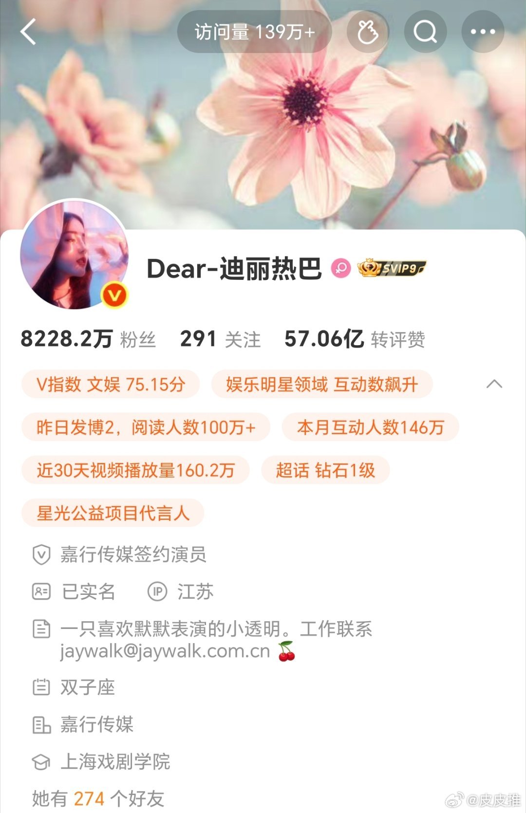 感觉迪丽热巴工作室换人了迪丽热巴终于更新微博了,IP地址也从马来西亚换成了江苏。 迪丽热巴嫡长女待遇