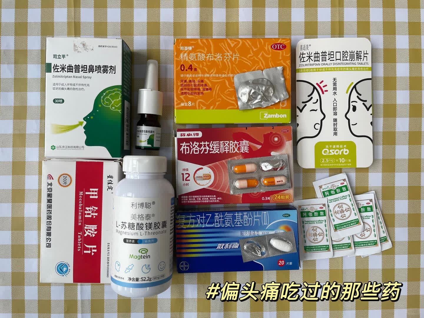 偏头痛用药经验分享 从初中就偏头痛,尤其大姨妈前后准发作,学名好像叫经期头痛。偏头疼连着眼眶也疼,连带着眼压变高,还伴着恶心,非得吐出来才稍缓。偏头疼这些年吃遍了各种止疼药,跟大家简单分享一下 . [一.] 布洛芬 ①布洛芬舒缓胶囊:一开始效果不错,但吃久了就耐药了。它只适合轻度头痛,且得在发作前吃,一旦疼起来再用,起效就特别慢,彻底缓解头疼需要2-3个小时 ②精氨酸布洛芬:哈哈我吃的片剂半小时能见效,还有颗粒袋装的,十分钟就有反应,但味道像牙膏,不太好接受。这个很适合偏头痛严重时救急 [二.] 散利痛与头痛粉 ①散利痛:10分钟左右就能止疼,但必须饭后吃,耐药性也强,后期起效越来越慢。但是这个哈哈我看网上说副作用很多,但是没办法真的好用哈哈哈 ②头痛粉:15分钟见效,价格便宜,但用料也很猛,姐妹们来大姨妈就不要吃了,哈哈我经期头痛都不敢吃 [三.] 苏糖酸镁+维生素B 以前以为偏头痛只能靠止疼药,后来在偏头痛社区得知补镁和维生素有用,试了小半年。这段时间,经期偏头痛次数少了大半,恶心想吐的症状也轻了很多 [四.] 佐米曲普坦 ①鼻喷:不能仰头喷,否则会流进喉咙。得用对方法才有效,操作感觉很麻烦,但用对了15分钟左右就能见效,就是价格贵 ②口腔崩解片:使用很方便,不用水送服也不用嚼,起效和鼻喷差不多,价格也偏贵 . ⭐ 偏头疼快速缓解的方法 梳头:用硬齿梳反复梳头皮15分钟左右 蒸汽眼罩:别敷眼睛,敷在额头会舒服很多 (以上内容纯个人经验分享,仅供参考,严重问题请就医) 头疼 偏头疼 偏头疼快速缓解 来姨妈头疼 经期头疼 来月经头疼是怎么回事 偏头疼吃什么药 头痛 神经性头痛 苏糖酸镁