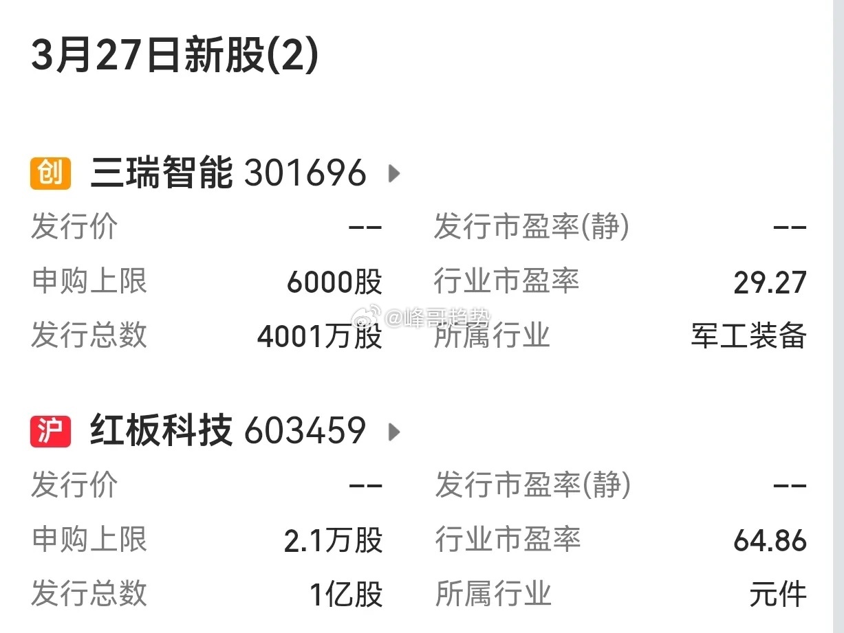 下周(2026年3月23日至3月27日)A股市场共有3只新股申购,其中北交所、沪市主板、创业板各1只。 发行时间:周一1只,周五2只。 其他发行事项,因数据不全,请注意阅读当日相关公告。北交新股新股解读申购时间