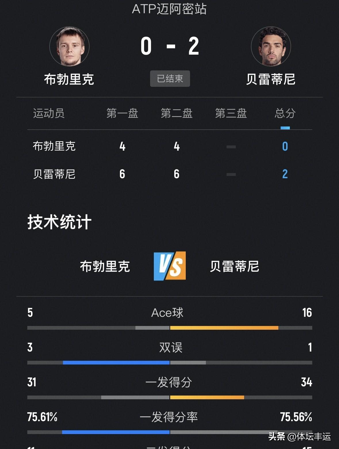 快讯,布勃利克遭遇一轮游[捂脸][捂脸]压力娃·弗里茨·菲斯·卡恰诺夫晋级@男女单打次轮比赛战报🆕⬇️⬇️ ✅刚刚🔚的女单次轮比赛,11号种子俄罗斯亚历山德罗娃6-3、6-3横扫外卡选手奥地利塔格尔晋级; ✅刚刚🔚的男单次轮比赛,6号种子美国弗里茨6-3、6(2)-7、6-3战胜荷兰范尚书晋级; ✅刚刚🔚的男单次轮比赛,10号种子哈萨克斯坦布勃利克4-6、4-6不敌意大利贝雷蒂尼遭遇一轮游! ✅刚刚🔚的男单次轮比赛,14号种子俄罗斯卡恰诺夫6-3、6-3横扫西班牙阿根廷晋级; ✅刚刚🔚的男单次轮比赛,28号种子法国菲斯6-2、6-3横扫外卡选手美国布兰奇晋级!