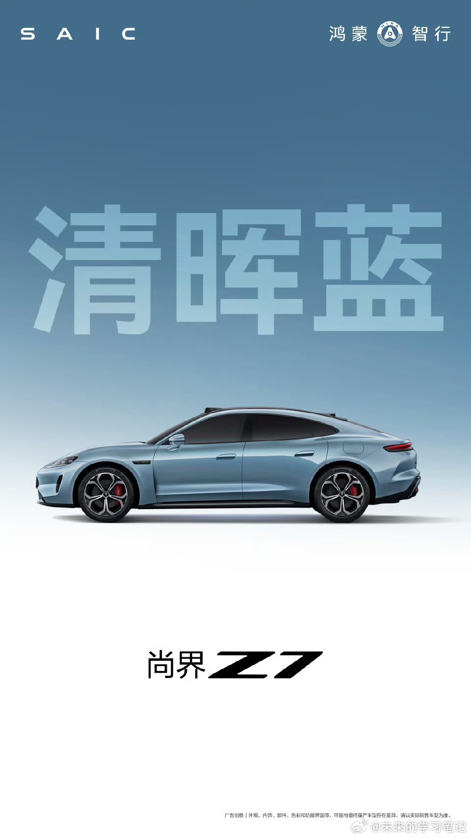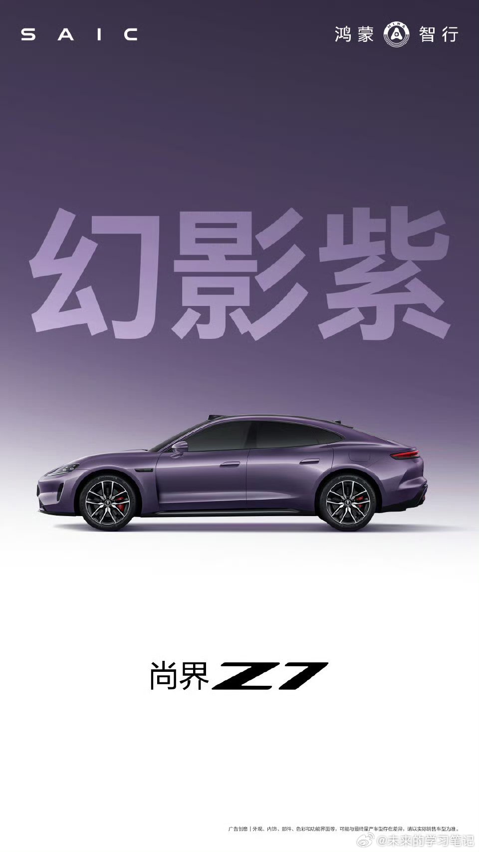 尚界z7 同样是五个车身颜色,蓝白、蓝、紫加两个粉色,喜欢哪个?