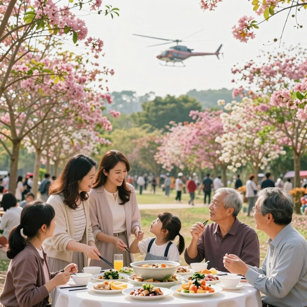 深圳大梧桐春花宴浪漫启幕!千人素宴+直升机赏花,春日打卡天花板来了! 当深圳的风开始裹着花香,大梧桐山就成了春日的浪漫据点。3月21日,深圳首届大梧桐春花宴正式拉开帷幕,这场集结了"舌尖禅意""云端浪漫"的春日盛宴,刚一登场就刷爆了深圳人的朋友圈。 沿着盘山步道往上走,最先撞入眼帘的是漫山遍野的花潮。勒杜鹃在枝头热烈绽放,粉的、紫的、红的花瓣交织成彩色瀑布;深山含笑躲在林间,洁白花瓣衬着嫩黄花蕊,风一吹就飘起阵阵甜香。而山脚下的广场上,千人素宴的长桌已经铺好,原木色的餐台配着青瓷餐具,每桌都摆着一小束山野里采来的春花,氛围感直接拉满。 开餐铃一响,穿着素色禅服的工作人员端着菜品鱼贯而出——翡翠般的凉拌青笋、裹着菌香的素烧豆腐、用桃花瓣点缀的桂花糕……每道菜都透着春日的清新。来自福田的陈阿姨一边夹菜一边感叹:"平时吃惯了重油重盐,这一桌素宴把春天的味道都吃进嘴里了!"更有意思的是,现场还设置了"春日手作区",游客可以跟着师傅学做鲜花饼,揉面、包馅、压模,亲手把花香封进酥皮里。 如果说千人素宴是舌尖上的春日,那直升机赏花就是云端的浪漫。停机坪上,红色的直升机已经整装待发,不少游客拿着手机拍照,脸上满是期待。"起飞的瞬间真的太震撼了!"刚下飞机的95后小余激动地说,"从空中往下看,漫山的花就像彩色的地毯,盘山公路像丝带绕在山间,连远处的盐田港都清晰可见,这视角,比任何照片都美!" 除了这两大"王牌项目",现场还有不少惊喜:汉服爱好者们穿着襦裙在花下走秀,衣袂飘飘与春花相映成趣;山野市集上,摊主们摆着自制的花香皂、干花书签,每一样都带着春日的温度;甚至还有"春日邮局",游客可以写下春日心愿,让工作人员挂在梧桐山的"愿望树"上,据说风会把心愿带给春天。 家住罗湖的张小姐带着父母和孩子一起来打卡,她笑着说:"本来只是想带老人孩子出来踏春,没想到既能吃饭又能坐直升机,老人喜欢素宴的清淡,孩子对直升机好奇得不行,一家人都玩得开心。" 其实,大梧桐春花宴的浪漫,从来不止于花。它是深圳人对春日的珍视,是忙碌生活里偷来的诗意。当我们在千人素宴上共享一碗清粥,在直升机上俯瞰漫山花海,那些关于春天的期待、关于自然的热爱,都在这一刻有了归处。 这个春天,别再让忙碌错过花期。来大梧桐山赴一场春花之约,在素宴里品禅意,于云端上看花开,把春日的浪漫,都装进记忆里。毕竟,这样的春日盛宴,一年只有一次呀!