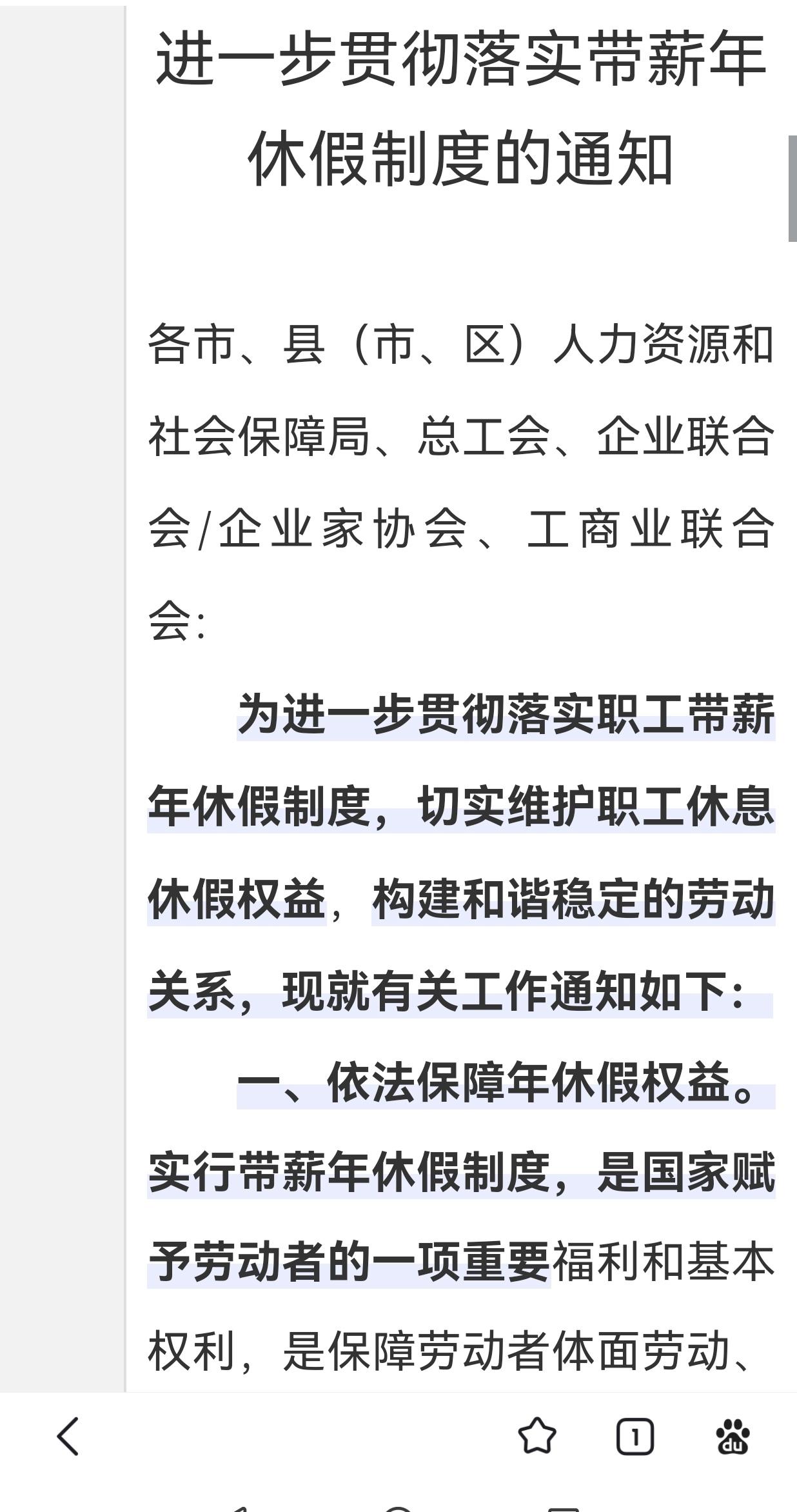 浙江省人力资源和社会保障厅3月19日发布《关于进一步贯彻落实带薪年休假制度的通知》。 《通知》提出,健全年休假计划管理,要求全省各地要指导督促用人单位建立健全年休假计划管理制度,制定职工轮流休假计划,从年初开始统筹安排职工轮流休假。计划确定后,职工无特殊情况应服从用人单位统一安排。