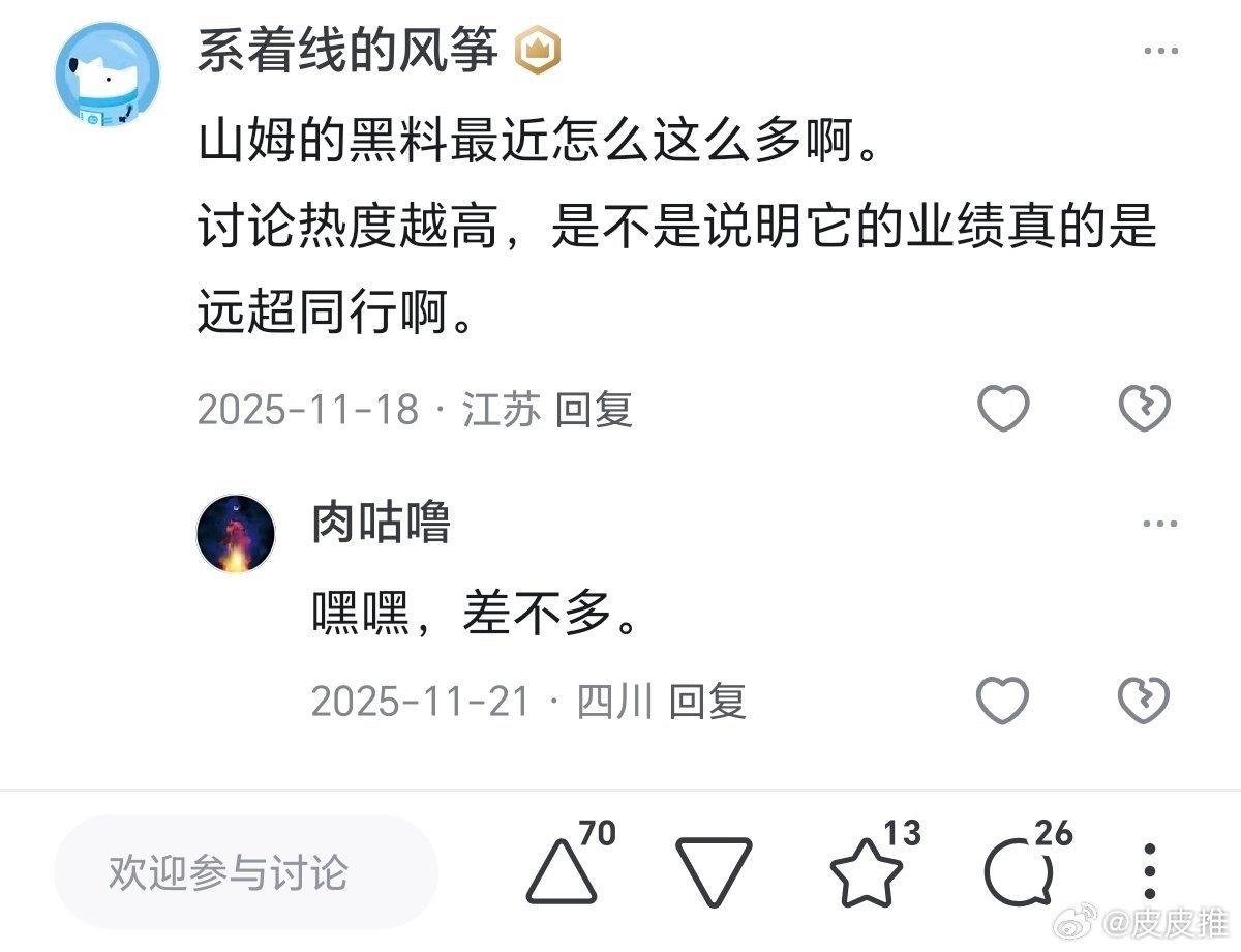 不过,对于山姆近期频发的黑料,网友也持有不同看法。山姆的黑料最近怎么这么多啊?讨论热度越高,是不是说明它的业绩真的是远超同行啊。
