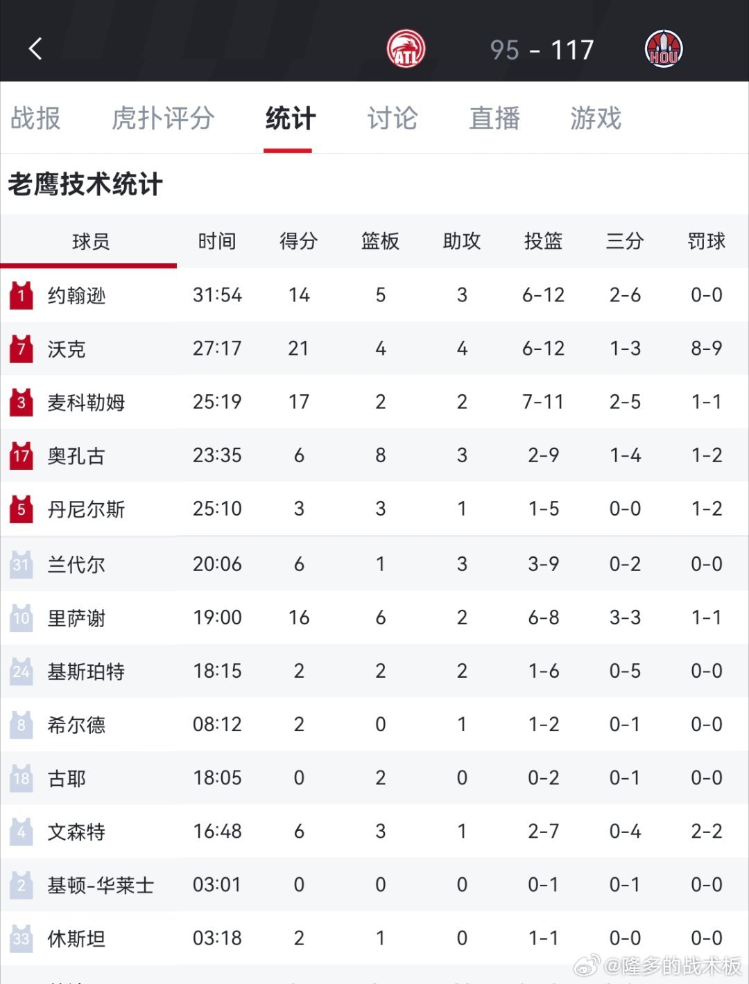 火箭117-95大胜老鹰,终结对手11连胜。