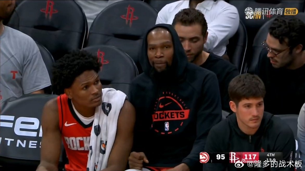 杜兰特25分,史密斯23分,申京15分9板10助老鹰vs火箭