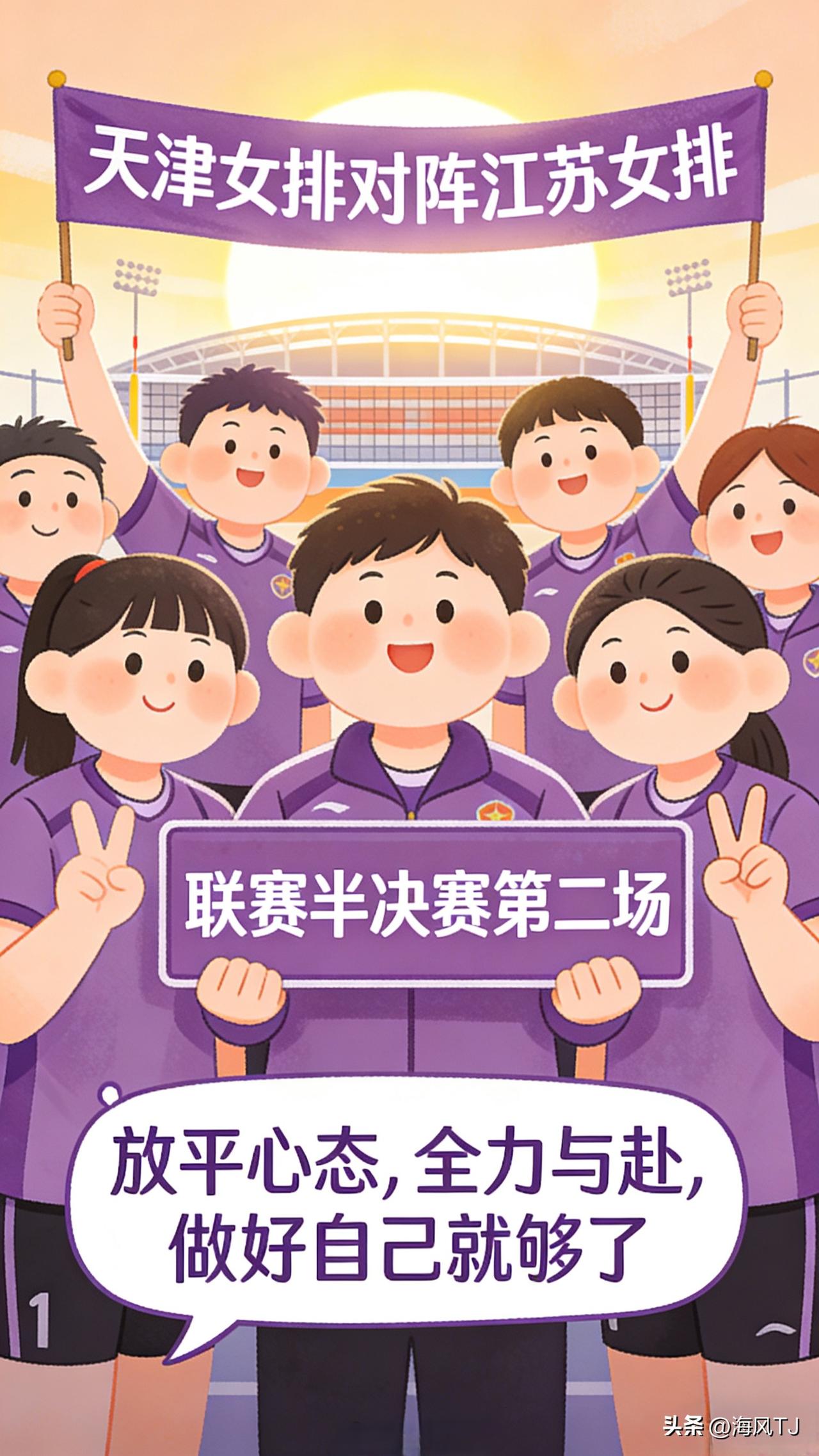 直播女排联赛半决赛天津球迷💪 女排联赛半决赛第二场下午四点半在江苏常州开打。天津女排球迷对这场比赛的观看心情就是期待女排姑娘们全力以赴,放平心态。因为今年的天津女排已经足够好了,完成了联赛目标! 首场3:0,第二场只要正常发挥,天津女排挺进决赛是大概率事件。因为竞技体育实力为王。