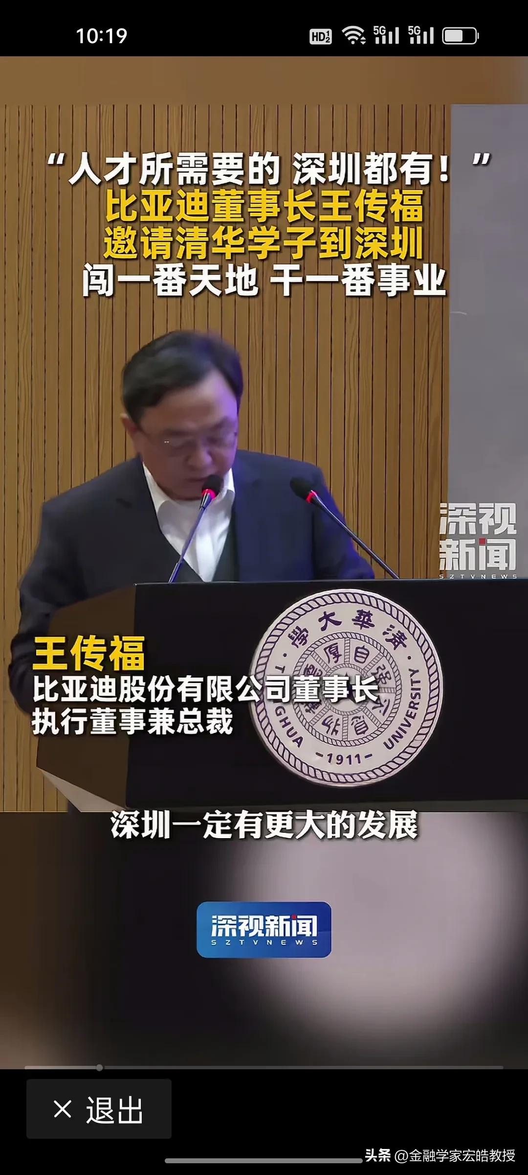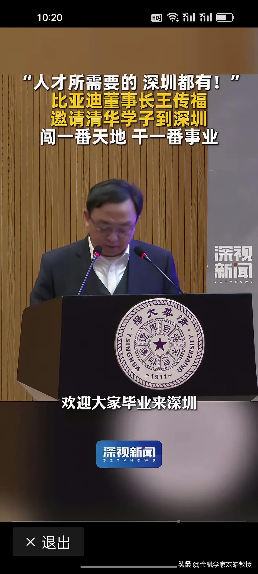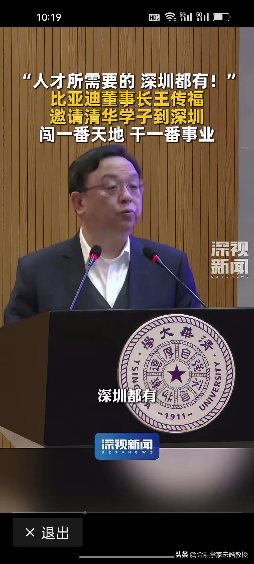 王传福亲自站台!深圳向清华学子喊话:你要的,我们都有! 昨天,王传福现身清华讲台,以深圳企业代表身份向顶尖学子发出邀约:“人才所需要的,深圳都有!欢迎大家毕业来深圳闯一番天地、干一番事业。” 深圳正用最大诚意拥抱人才。比亚迪有90万员工,是A股上市公司员工最多的企业,连王传福都亲自现身清华做演讲为深圳打call。前两天看到清华领导演讲时候说,清华毕业生除了留京外,最喜欢去广东发展,其实很多人都是冲着深圳去的。