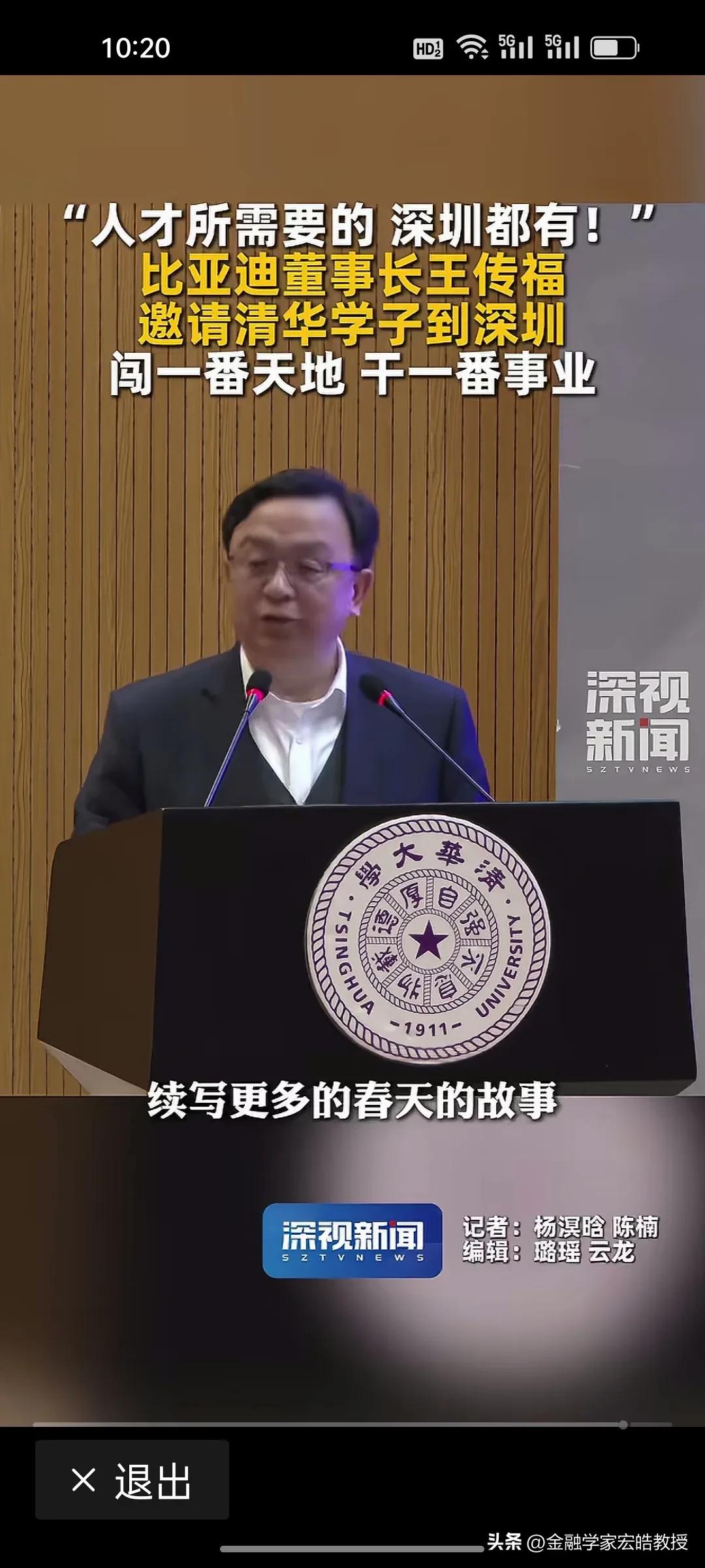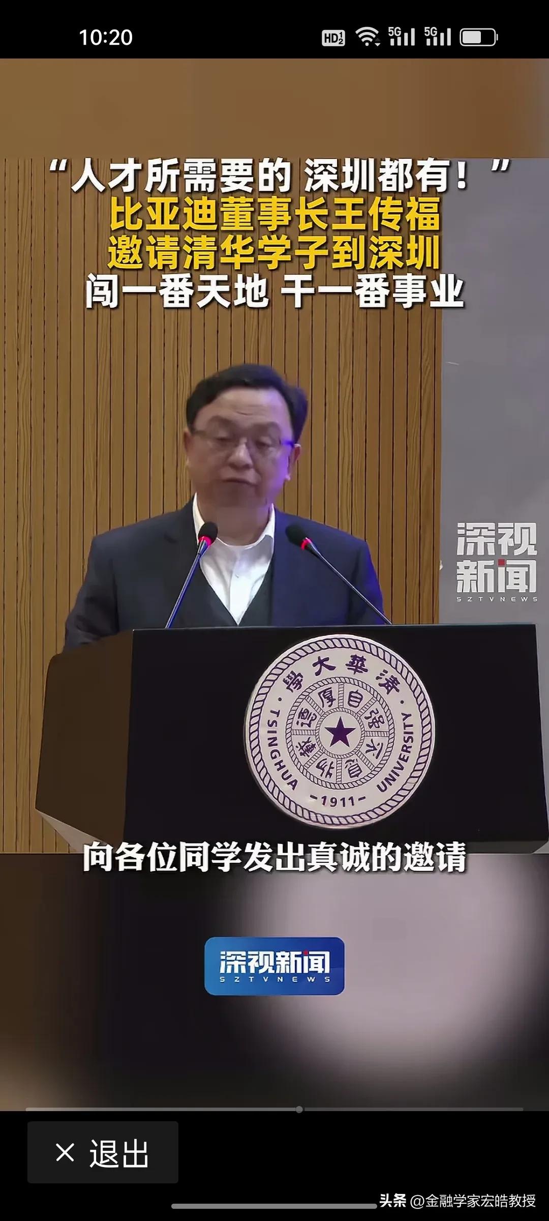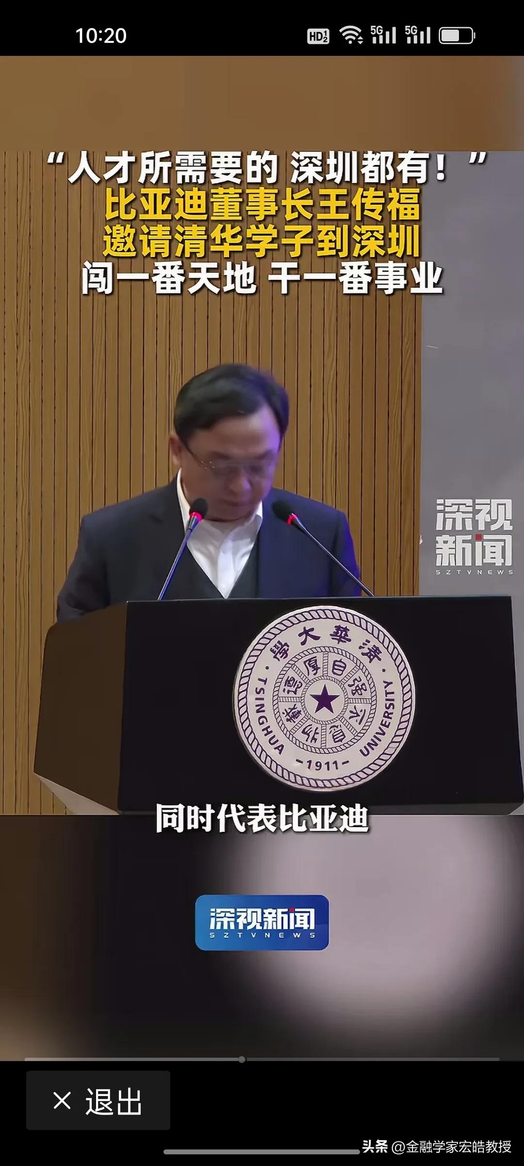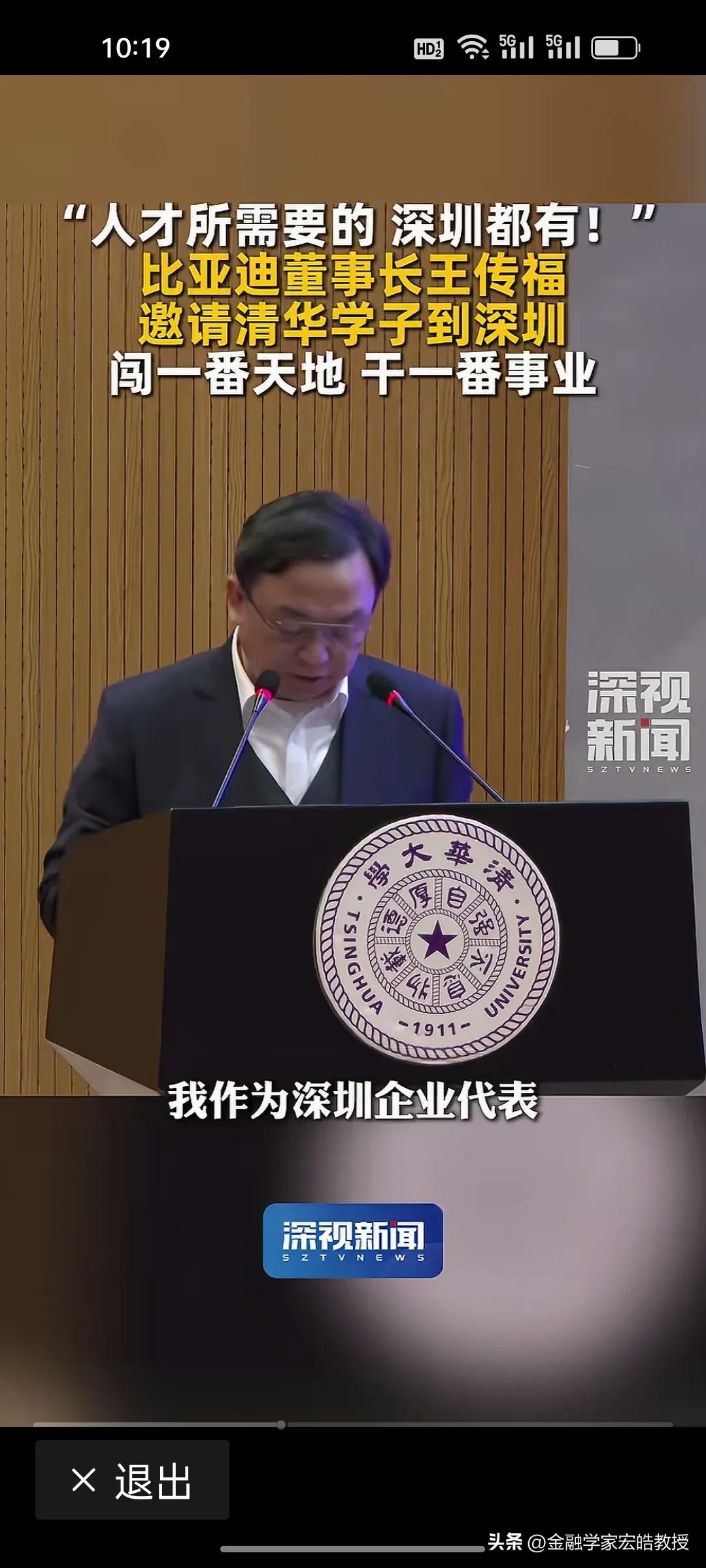 王传福亲自站台!深圳向清华学子喊话:你要的,我们都有! 昨天,王传福现身清华讲台,以深圳企业代表身份向顶尖学子发出邀约:“人才所需要的,深圳都有!欢迎大家毕业来深圳闯一番天地、干一番事业。” 深圳正用最大诚意拥抱人才。比亚迪有90万员工,是A股上市公司员工最多的企业,连王传福都亲自现身清华做演讲为深圳打call。前两天看到清华领导演讲时候说,清华毕业生除了留京外,最喜欢去广东发展,其实很多人都是冲着深圳去的。
