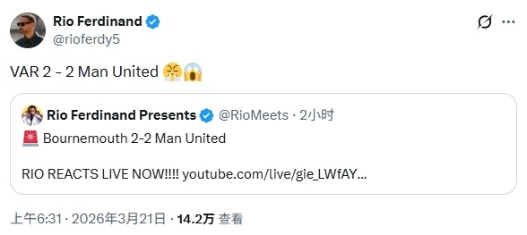 怒了!曼联遭遇双标判罚,费迪南德愤怒发文:VAR2-2曼联😤😱