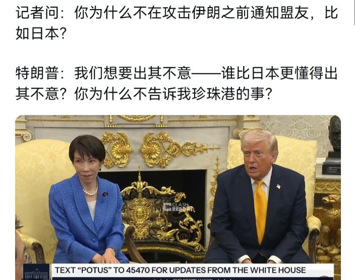 高市早苗脸都阴沉了,一句话都不敢说!特朗普是一点面子都没给高市早苗!3月20日,根据外媒报道,高市早苗与特朗普举行会晤,有记者提问称,你为什么不在攻击伊朗之前通知盟友,比如日本?面对记者的提问,特朗普称:我们想要出其不意——谁比日本更懂得出其不意?你为什么不告诉我珍珠港的事? 说白了,特朗普在白宫会晤时拿珍珠港旧事羞辱高市早苗,表面是一句即兴调侃,实则是美国对日本盟友的刻意打压与权力碾压,更是美日不平等同盟关系最赤裸的暴露。 要知道,就在高市早苗带着730亿美元对美投资大礼、一路谄媚示好访美的节骨眼上,面对日本记者“为何袭击伊朗前不通知盟友”的提问,特朗普直接将美国的突袭与日本偷袭珍珠港绑定,反问“你们怎么没提前告诉我”。高市早苗当场僵住,睁大双眼、深吸一口气却一言不发,只能勉强维持微笑,她本想靠利益输送换美国的对等尊重,结果却遭当众揭历史伤疤,这操作活像热脸贴了冷屁股,把日本的外交尊严踩在了脚下。 可这绝非特朗普的临时口误,而是他精准算计的“下马威”。历届美国总统都刻意回避在日本领导人面前提及珍珠港,避免触碰历史敏感点,而特朗普偏要反其道而行之,就是要通过这种羞辱性言论,明确告知日本在同盟中的从属地位。潜台词再清晰不过:别跟美国谈盟友信任,日本当年的行为更“过分”,没资格对美国的单边行动指手画脚,这账怎么算都是美国掌握绝对主导权。 说实话,高市早苗的尴尬处境,完全是她一味对美谄媚、放弃外交底线的自找苦吃。访美前,她就高调宣称“只有唐纳德能给世界带来和平与繁荣”,会晤中更是先用英语发言却语塞,转而改用日语,全程姿态卑微。为了讨好特朗普,她不仅承诺巨额投资,还在中东问题上刻意偏袒美以,让外相“训斥伊朗”,却对美以违反国际法的行为一言不发。这种无底线的迎合,只会让特朗普更加肆无忌惮,当众羞辱不过是对这种“谄媚外交”的直接回应。 并且,美国对日本从来都是“利益索取优先”,所谓同盟不过是单向的利益输送。高市带来的730亿美元投资,涵盖核反应堆、天然气发电设施等项目,本质上是日本为换取关税减免和安全承诺的单方面付出。而特朗普除了口头欢迎,没有给予日本任何实质性的安全保障,反而再次施压要求日本参与霍尔木兹海峡护航,要知道日本九成以上原油进口需经过该海峡,参与护航只会让日本陷入中东战火风险,这种“只取不予”的关系,根本没有平等可言。 更关键的是,特朗普的羞辱戳破了美日同盟的虚伪面纱。日本一直试图以对美忠诚换取大国地位,却忘了美国始终将自身利益放在首位。特朗普的言论不仅在日本国内引发轩然大波,被批“令人羞耻”,更让国际社会看清,美日同盟根本不是平等伙伴关系,而是美国主导、日本依附的主仆关系。日本前外交官田中均也直言,这种讨好逢迎要适可而止,否则只会让旁观者感到厌恶。 要清楚,历史上美国从未真正尊重过依附于它的盟友,无论是此前对欧洲盟友的关税施压,还是对其他国家的单边制裁,都凸显其“美国优先”的霸权逻辑。特朗普拿珍珠港羞辱高市早苗,不过是这种逻辑在对日关系上的延续,警告日本只能服从,不能有任何质疑。日本以为靠利益输送就能换得尊重,却忘了依附霸权从来换不来真正的平等。 而未来,高市早苗的执政之路只会更加艰难。国内,民众对她的“谄媚外交”不满持续发酵,在野党纷纷发难,抗议集会接连举行;对外,特朗普会继续施压,要求日本在护航、军购等问题上作出更多让步。她想靠对美示好巩固政权、提升日本影响力,结果却让日本沦为国际笑柄,丧失外交尊严。关键转折点就看她是否能放弃对美依附、重拾独立自主的外交立场,可照目前的姿态,大概率只会继续忍气吞声,让日本在同盟中越陷越深。 说到底,特朗普羞辱高市早苗的事件,本质是美日不平等同盟关系的必然结果。日本越是放弃底线讨好美国,就越难获得对等尊重,所谓“牢不可破的同盟”不过是美国用来捆绑日本的枷锁。高市早苗的尴尬,不仅是个人的外交失格,更是日本在大国博弈中战略迷失的缩影——放弃独立自主,一味依附霸权,最终只会丢了尊严、损了利益,沦为别人棋盘上的棋子。 以上是小编个人看法,如果您也认同,麻烦点赞支持!有更好的见解也欢迎在评论区留言,方便大家一同探讨。