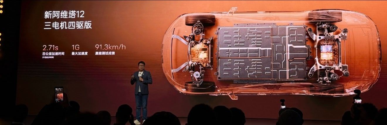 阿维塔发布太行智控2.0技术,相比去年的1.0,这次主要聚焦在安全上,比如高速爆胎,湿滑路面等场景,其中抬升通行的场景对于阿维塔12这种轿车来说很有用,离地间隙能直接升到210毫米,相当于SUV的能力。另外,新阿维塔12会上三电机版本,应该算是性能版,2秒71的加速。新车及预售价将在今晚正式发布