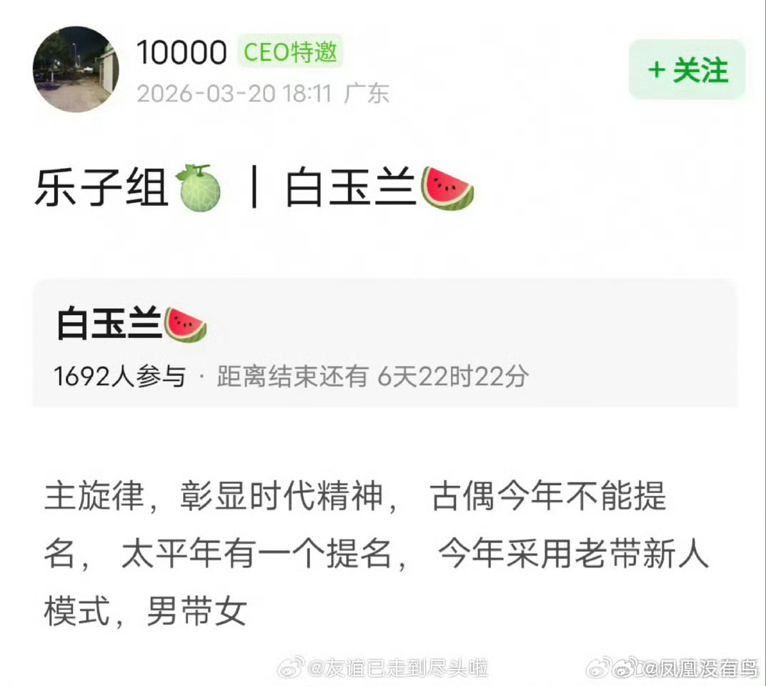 白玉兰 老带新怎么感觉是在造势嘞大家明明都不认可,不管是热度还是播放量都很差但是