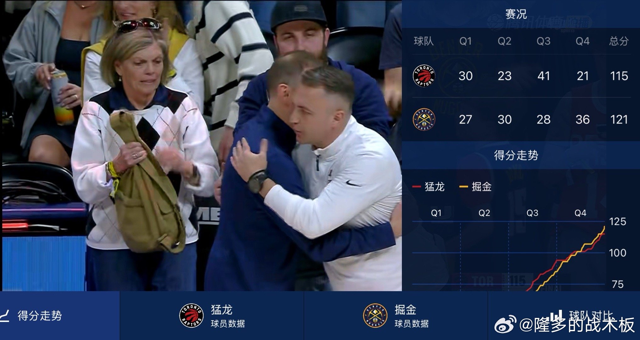 掘金第四节发力逆转了猛龙,单节净胜15分穆雷31分,约基奇22分8板9助,哈达威