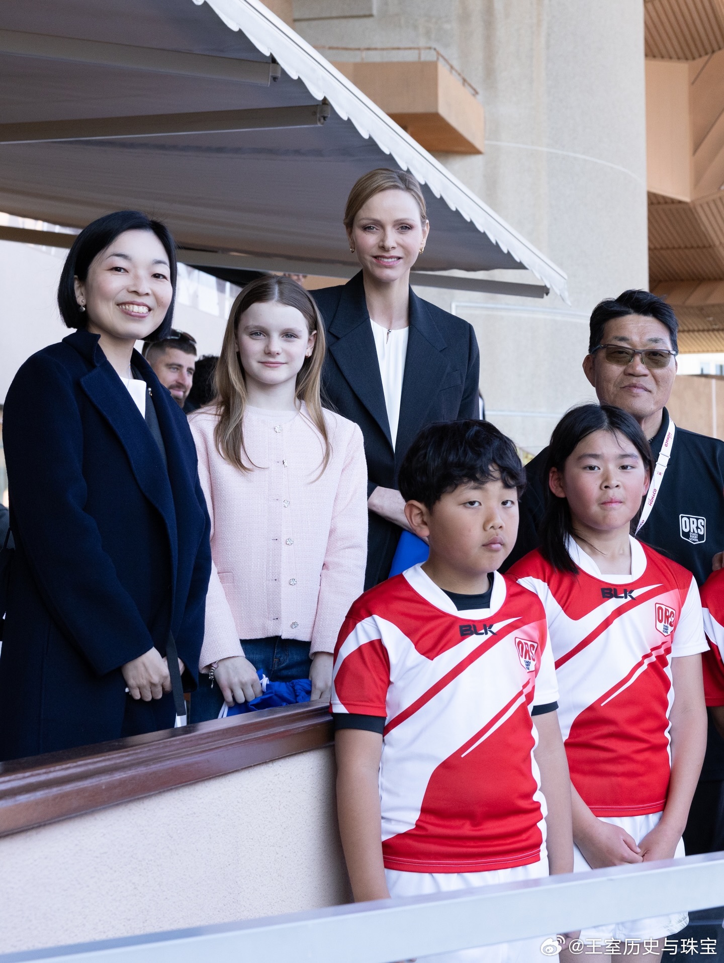 新闻 2026.3.20 摩纳哥亲王夫妇,加布里拉公主及查伦妮的弟弟加雷思(雅克缺席)出席一年一度的圣德沃特橄榄球锦标赛开幕式活动,今年因为有日本队伍参加,日本三笠宫彬子女王作为日本橄榄球联盟荣誉主席参加见证,彬子之前跟阿尔贝二世一起看过橄榄球世界杯比赛不陌生了。