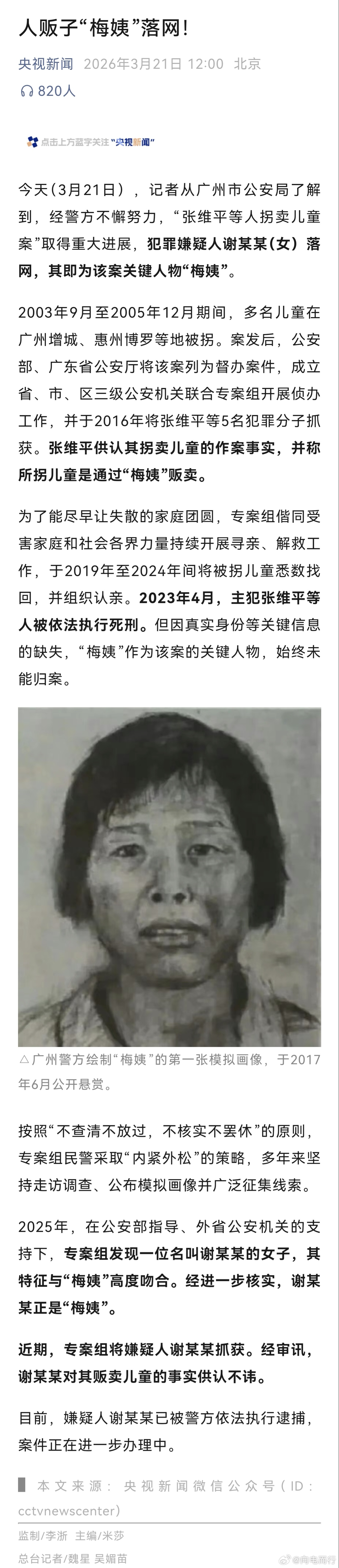 梅姨被逮捕这么多年,终于被逮住了!记得那个时候大人最常说的就是看好孩子别被偷走了。