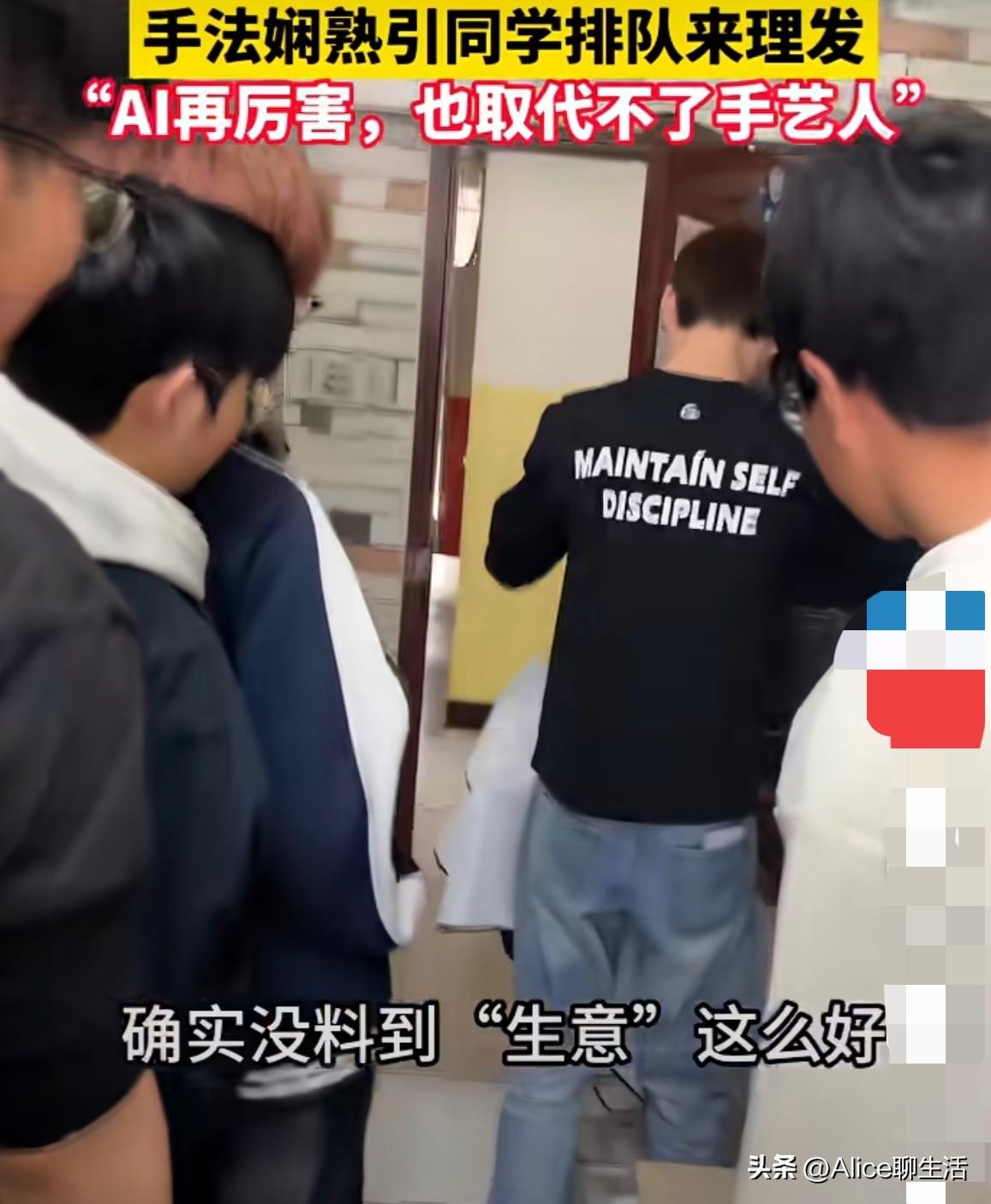 二月二校园名场面! 大学生托尼上线 同学排队排到宿舍门口 二月二龙抬头,校外的理发店排队排到腿软,价格还吓人,咱大学生干脆直接自己动手,把宿舍秒变美发沙龙! 剪刀咔咔 推子嗡嗡 这位帅哥同学手法稳得一批,分线、修剪、造型一气呵成,一点也不比外面托尼差,同学看得咋咋舌,一传十十传百,同一幢宿舍的同学全来排队,又省钱、又省事、更不翻车,爽翻了! 有同学剪完了问要付多少钱 托尼同学笑着说 嗑一个 喊声义父就行 整个宿舍都是快乐的青春笑声 原来 这托尼同学出身托尼世家,在这环境下,业余时间跟父亲学了几年,看到这段时间大家都迫切需要剪发,外面价格太贵又还要排队,于是就闪购了整套剪发工具,开始为舍友剪发,没想到精湛的手艺得到大伙的认可,于是出现了排长队等剪发的火热场面。 我认为这哪是理发,是当代咱大学生的务实与聪明:不躺平、不硬卷,用小技能解决大需求![赞]