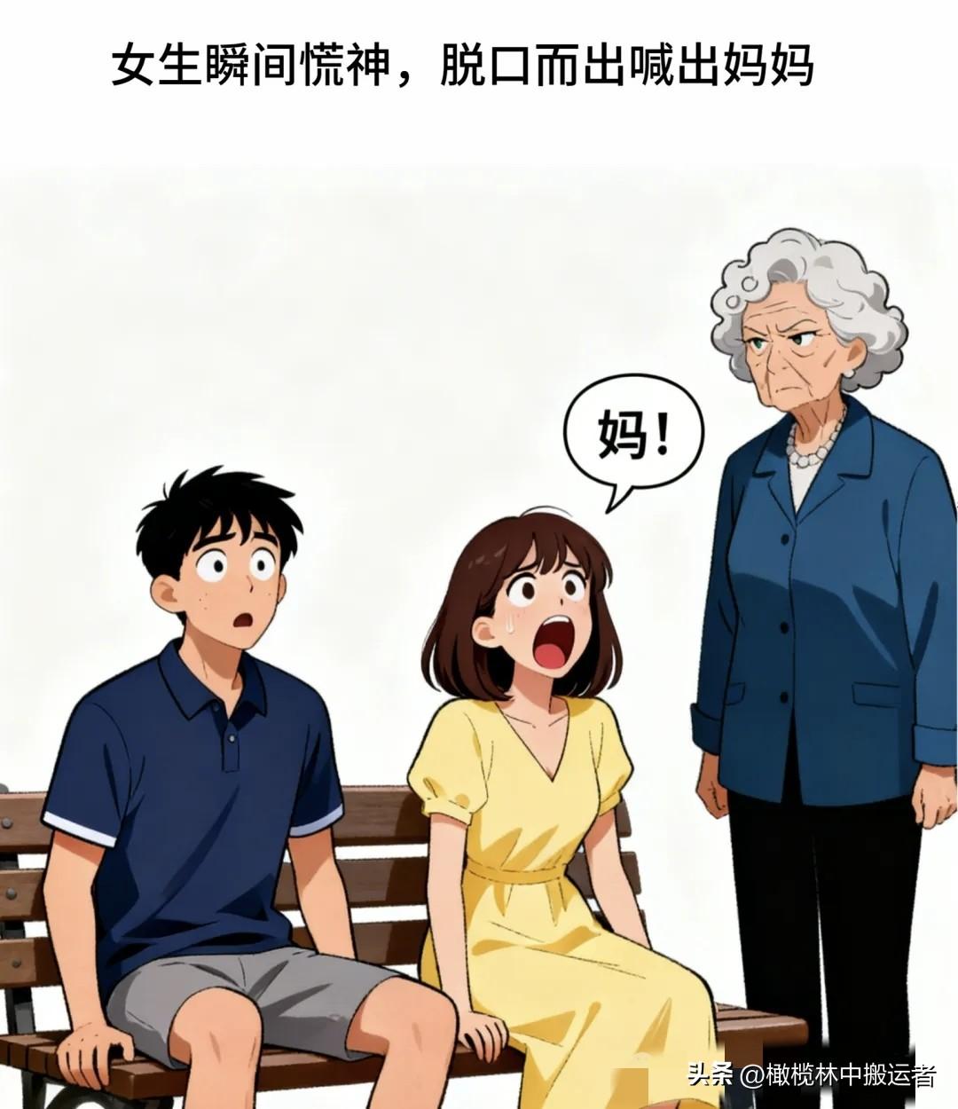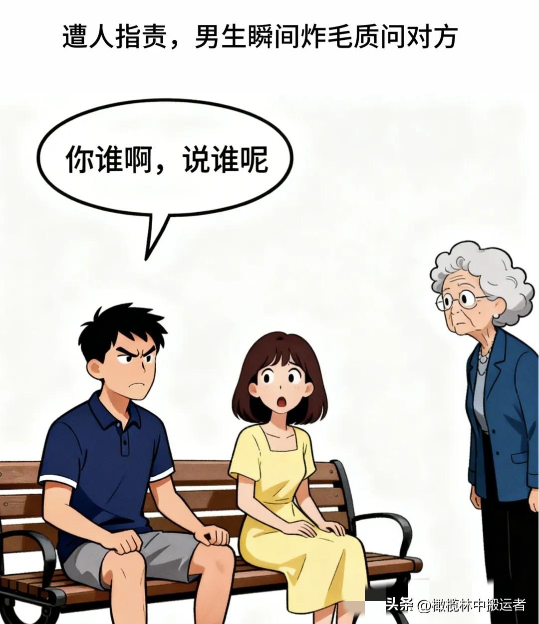 趣味漫画:老太太路过喊:不要脸。男怒:你谁啊,说谁呢。女生突然喊:妈!男忙说:阿