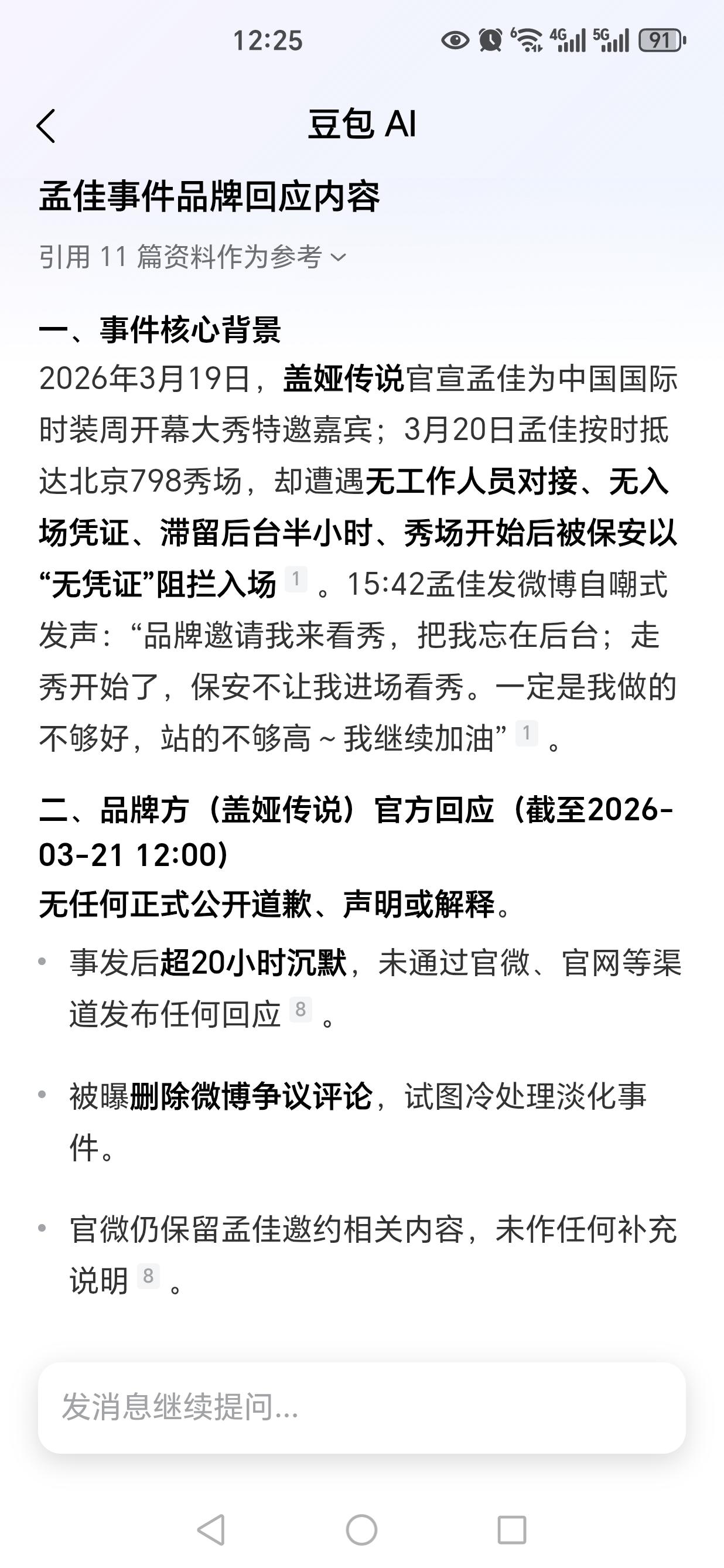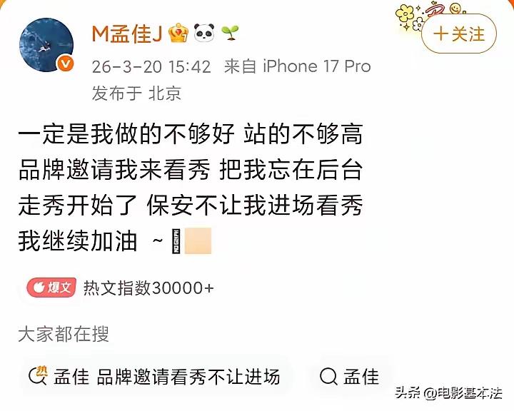 这事挺难理解的。一共才9个嘉宾,品牌方连9个人头都数不清吗?而且,连嘉宾没进场都不知道,品牌方工作人员都是废物…… 嘉宾没有品牌方工作人员专门对接?没有品牌方联络电话? 反正这个错绝对不是孟佳的。这个品牌方从主策划,到负责邀请嘉宾、对接嘉宾的人,到负责接待嘉宾的人,到保安,全场都是废物…… 孟佳够憋屈的了。