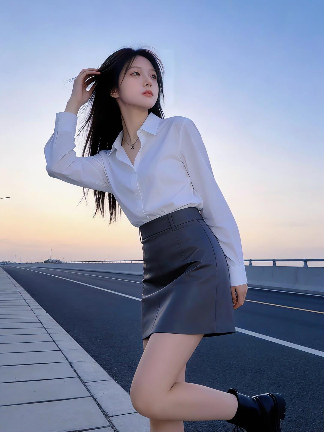 都市甜心穿搭,优雅白衬衫+高腰短裙,尽显时尚魅力!