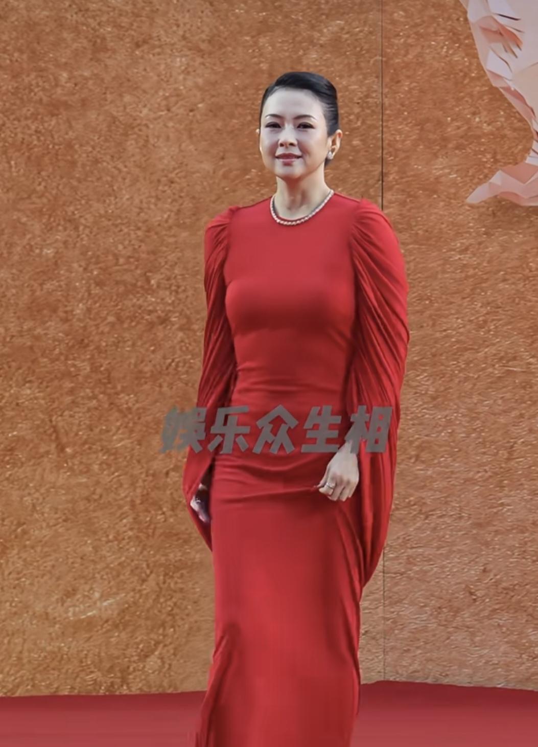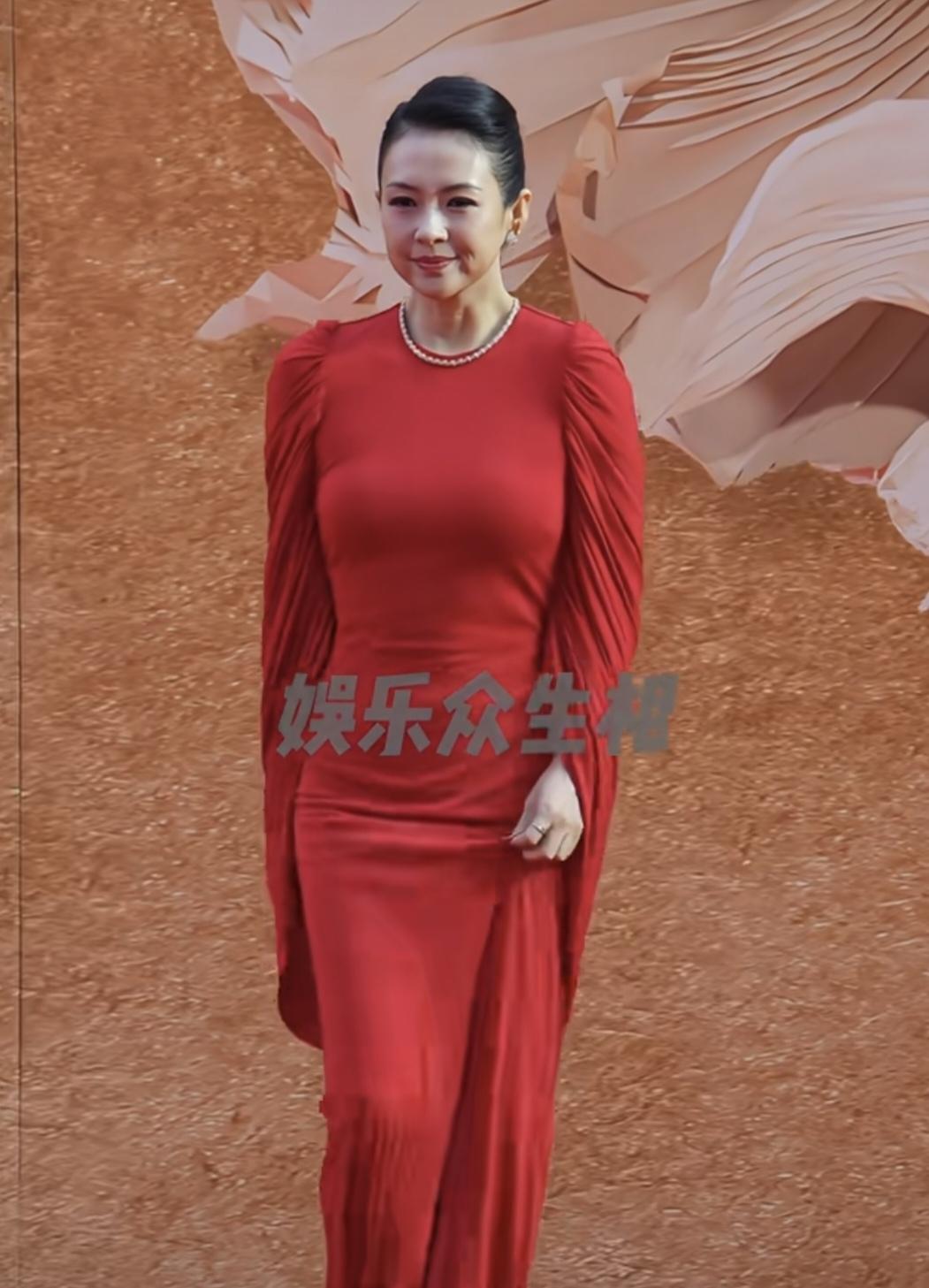 章子怡样貌变了!近日,她亮相首届CMG中国电影红毯,一袭大红色修身礼服,神态从容