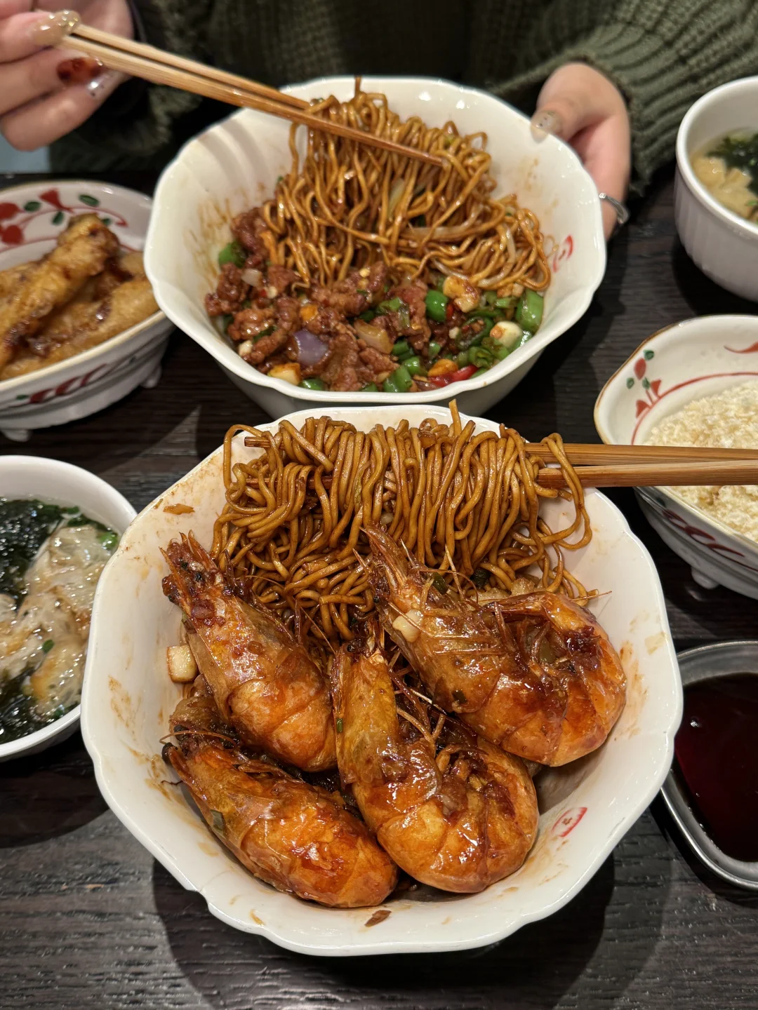 万象城神级一人食拌川!!! 现炒的浇头很有锅气,本地人已经连续好几天n刷这一碗面了 春季新出的油焖大虾拌川我强推!咸甜口的大虾(超大一只!外皮脆脆的,拌川也很入味又劲道🍜 还有很多小吃,小笼包、炸茄子、炸猪排… 再来碗🆓的紫菜汤泡油条碎太落胃了!!!!