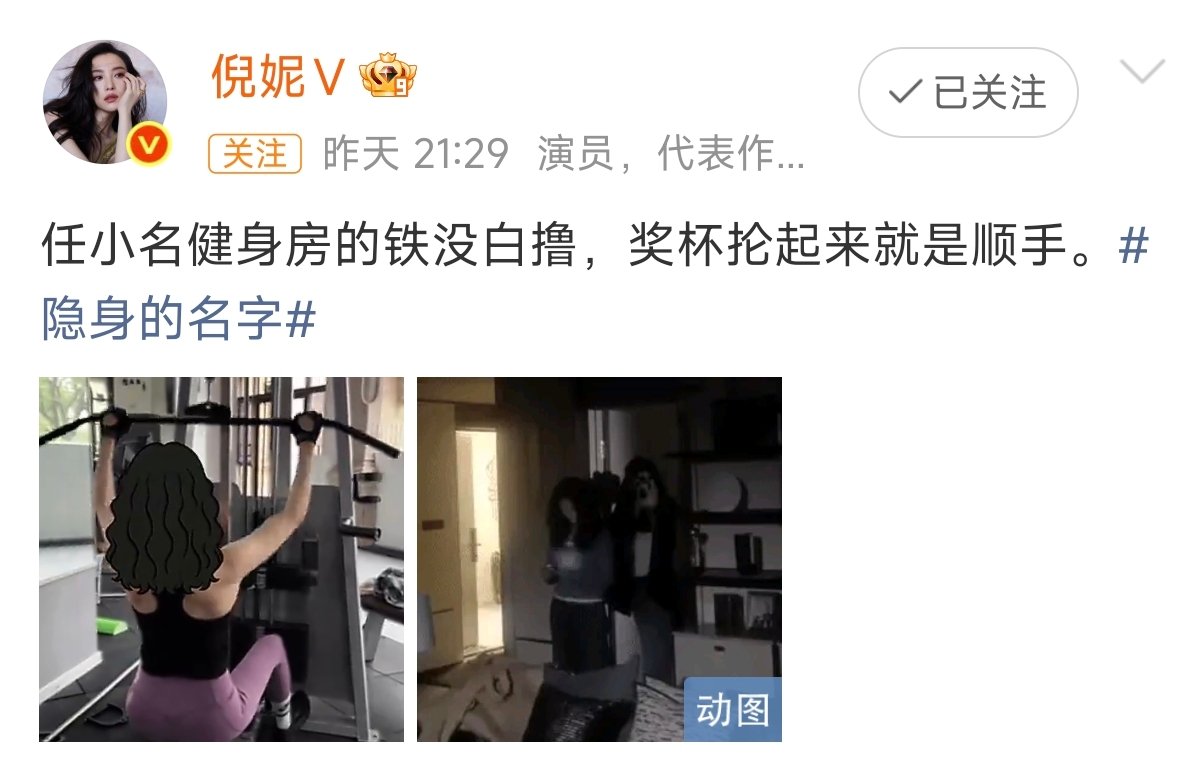 倪妮任小名健身房的铁没白撸倪妮奖杯抡起来就是顺手 不愧是健身达人倪妮,任小名这角色气场拉满,抡奖杯干脆利落,力量感和松弛感都拿捏得刚刚好。