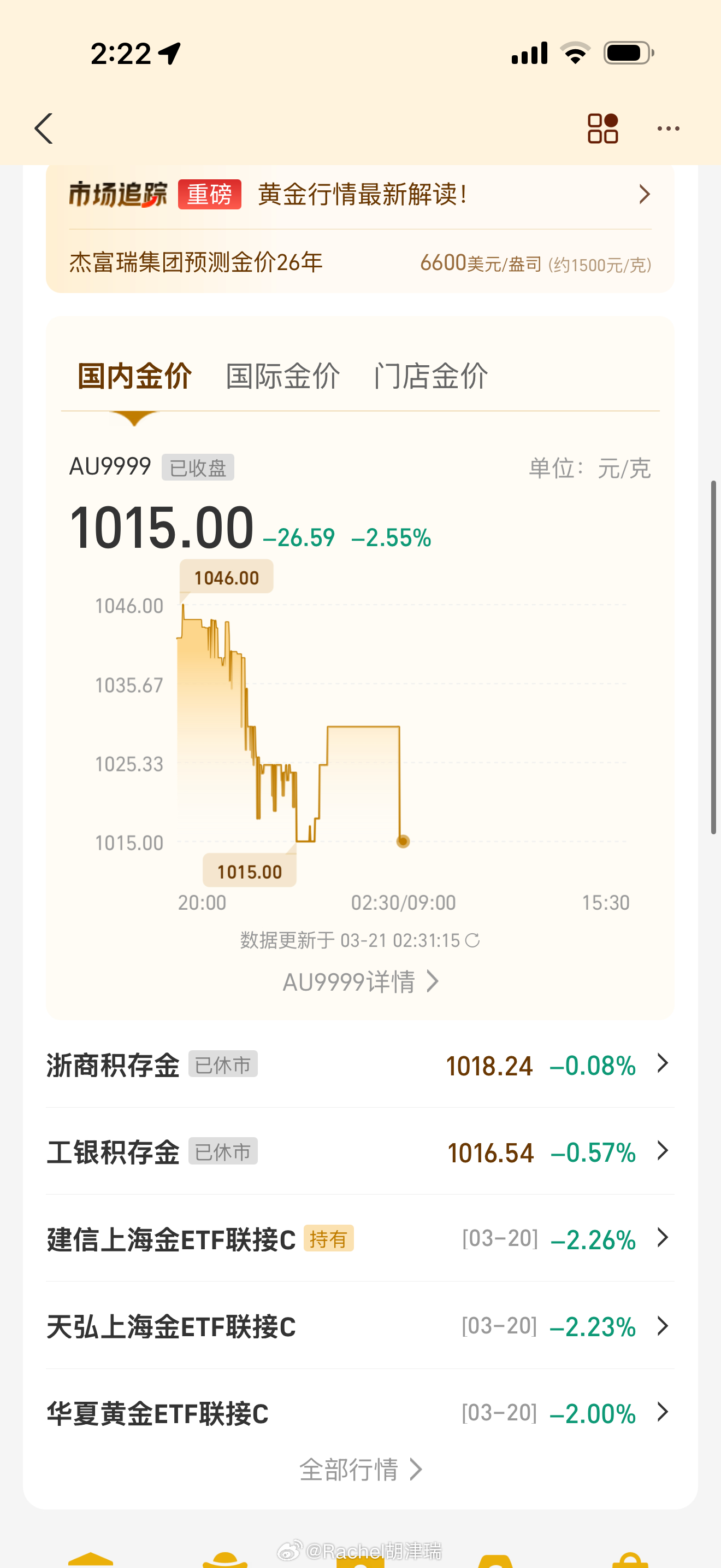 黄金大跌有人亏掉车有人抢破头低于1000了 但实际这个价位没什么意义 毕竟买入不了 等能买入了 周一开盘这个价就不见了 19号还有1001的价位呢 有人买入成功了吗?