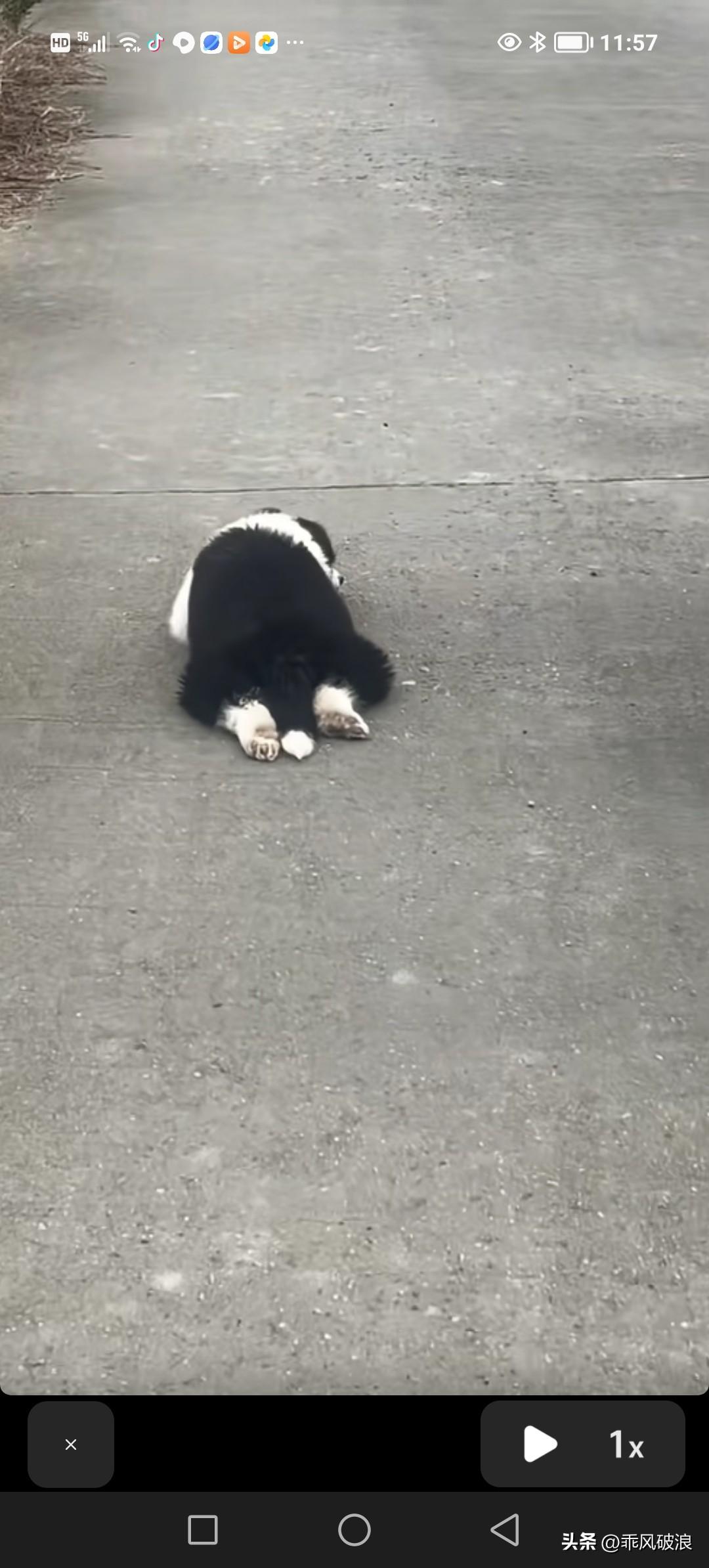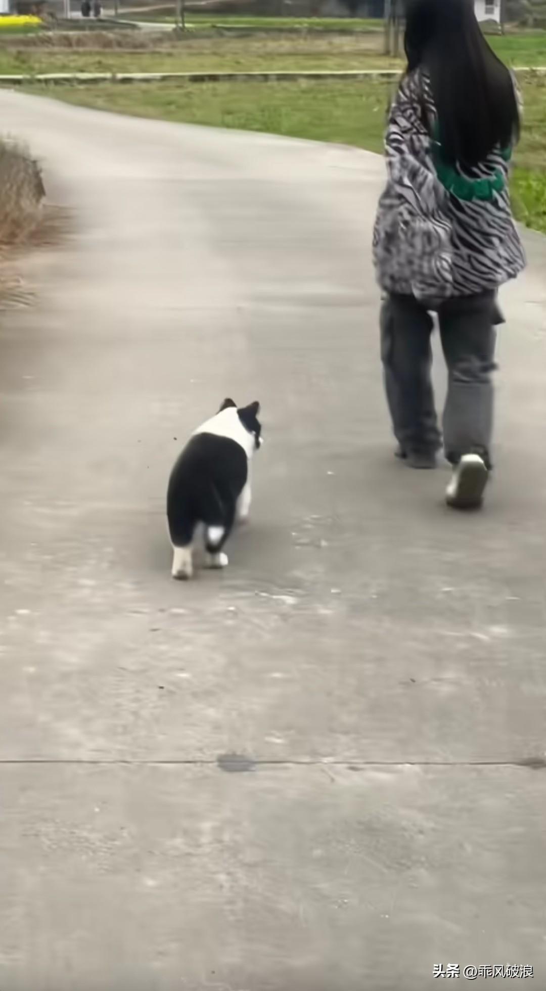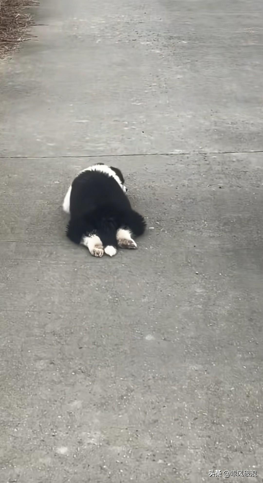 拍下一幕,一只小狗跟在一位小姑娘身后走着,走到姑娘前面后便赶忙趴下,一动不动,不