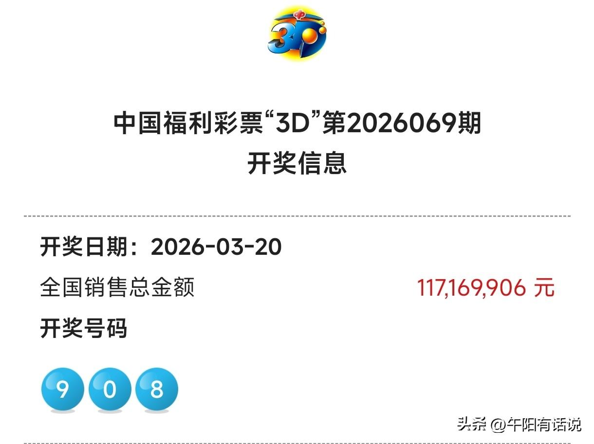 福彩3D26070期号码共享,重点关注大号继续热开 开奖快讯 福彩3D26069期开奖号码为:9 0 8 本期开奖号码大中小三路号码布局发生了显著变化,中路号码在连续十三期疯狂热开之后,本期终于迎来回调。大号则趁机走热,开出了两码8-9组合,其中号码8也是在大冷十八期后终于重见天日。 本期选号复盘 本期午阳对大中小三路号码走势判断精准,不仅迎来了了组选、直选双丰收,最让人激动的是本期所选精选号码,全部精准命中! 不仅胆码0命中,百位、十位、个位金胆也全部命中,更可喜的是精选单注号码精准命中奖号。在这里要特别感谢,长期以来一直对午阳赞赏支持的老铁们。再接再厉,继续加油! 组选号码关注 3,4,6,7,8,9 直选号码关注 百位号码:7,2,0,3,9 十位号码:3,5,1,6,8 个位号码:4,5,6,9,7