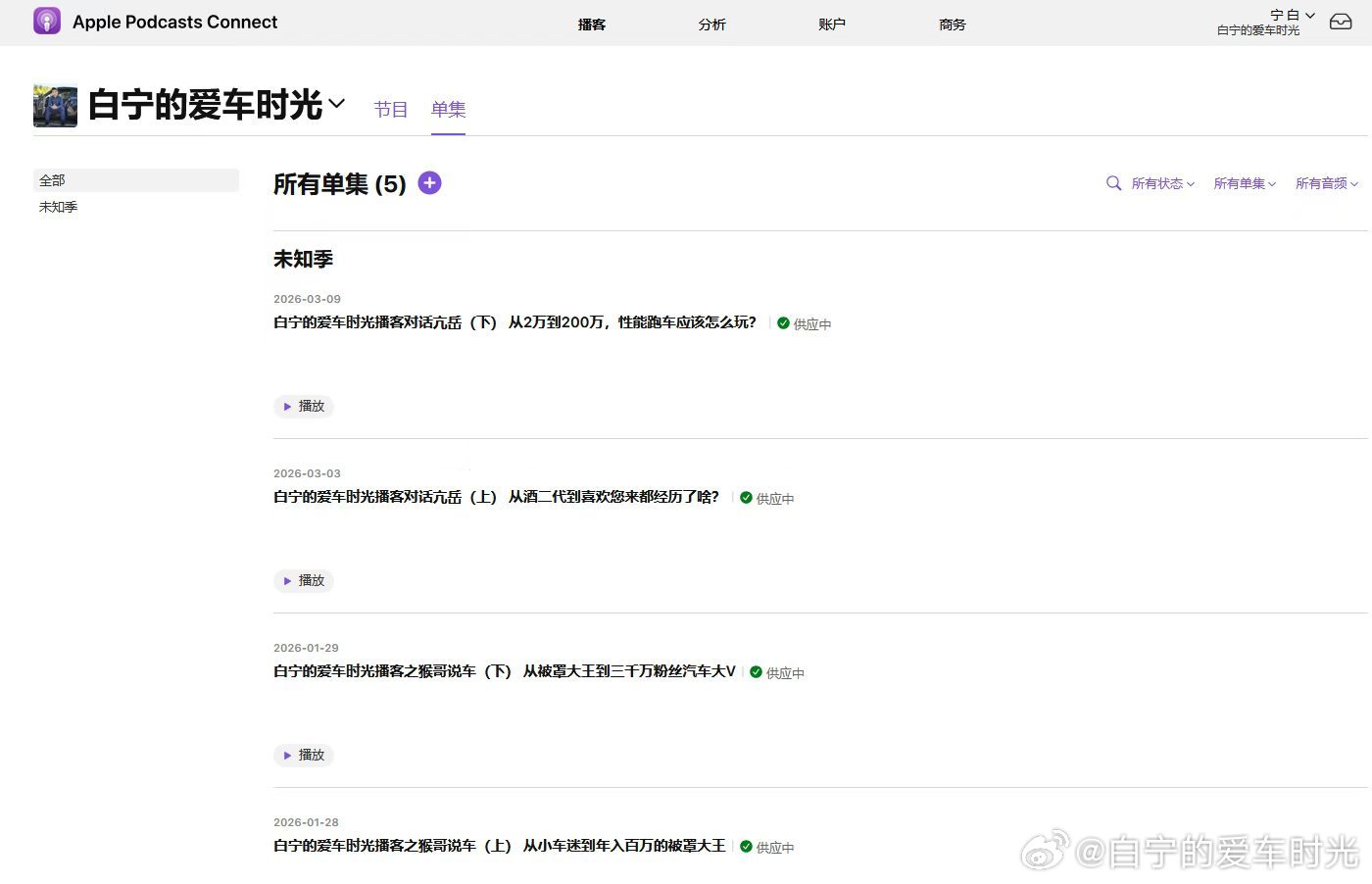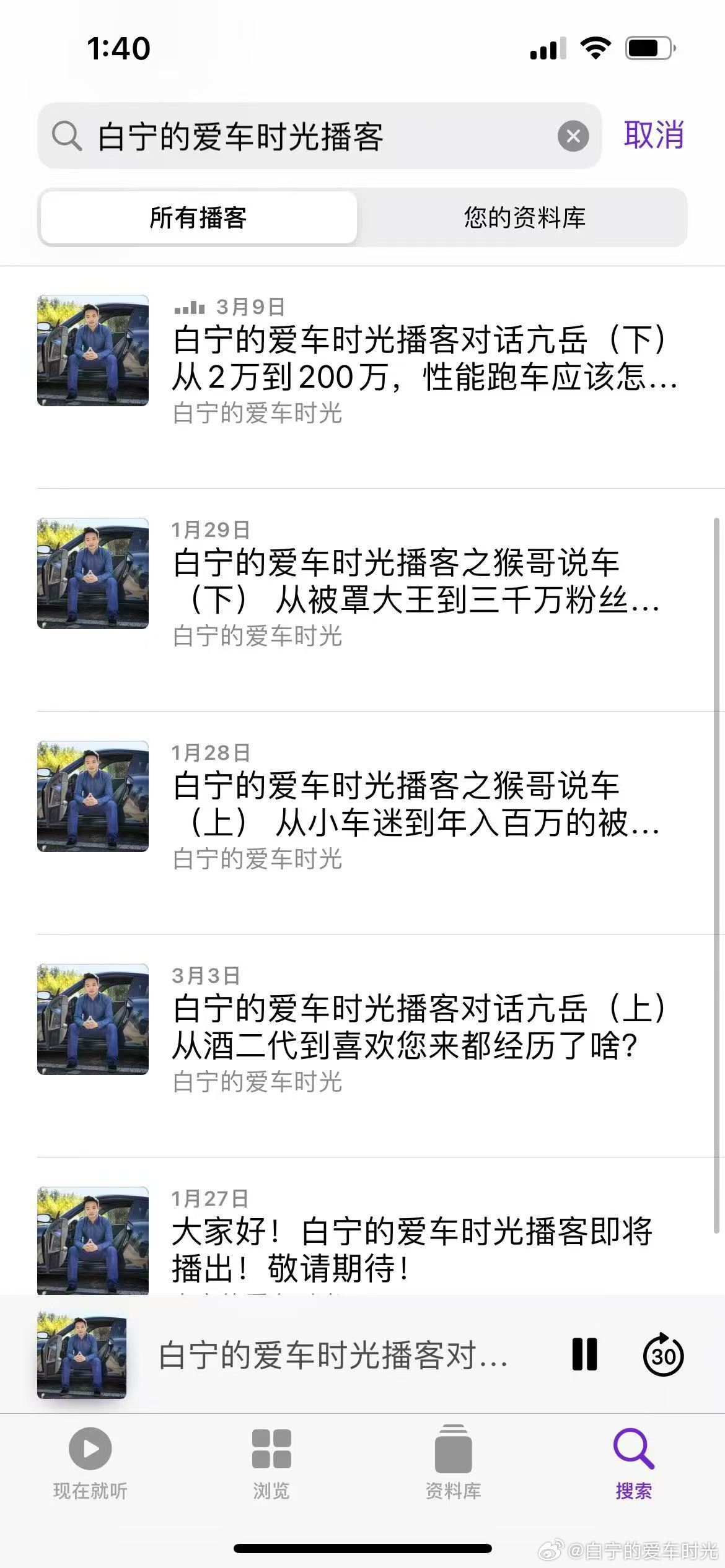 白宁的爱车时光播客已正式登陆苹果播客!大家久等啦!后面每个月会有一个人物的对谈,