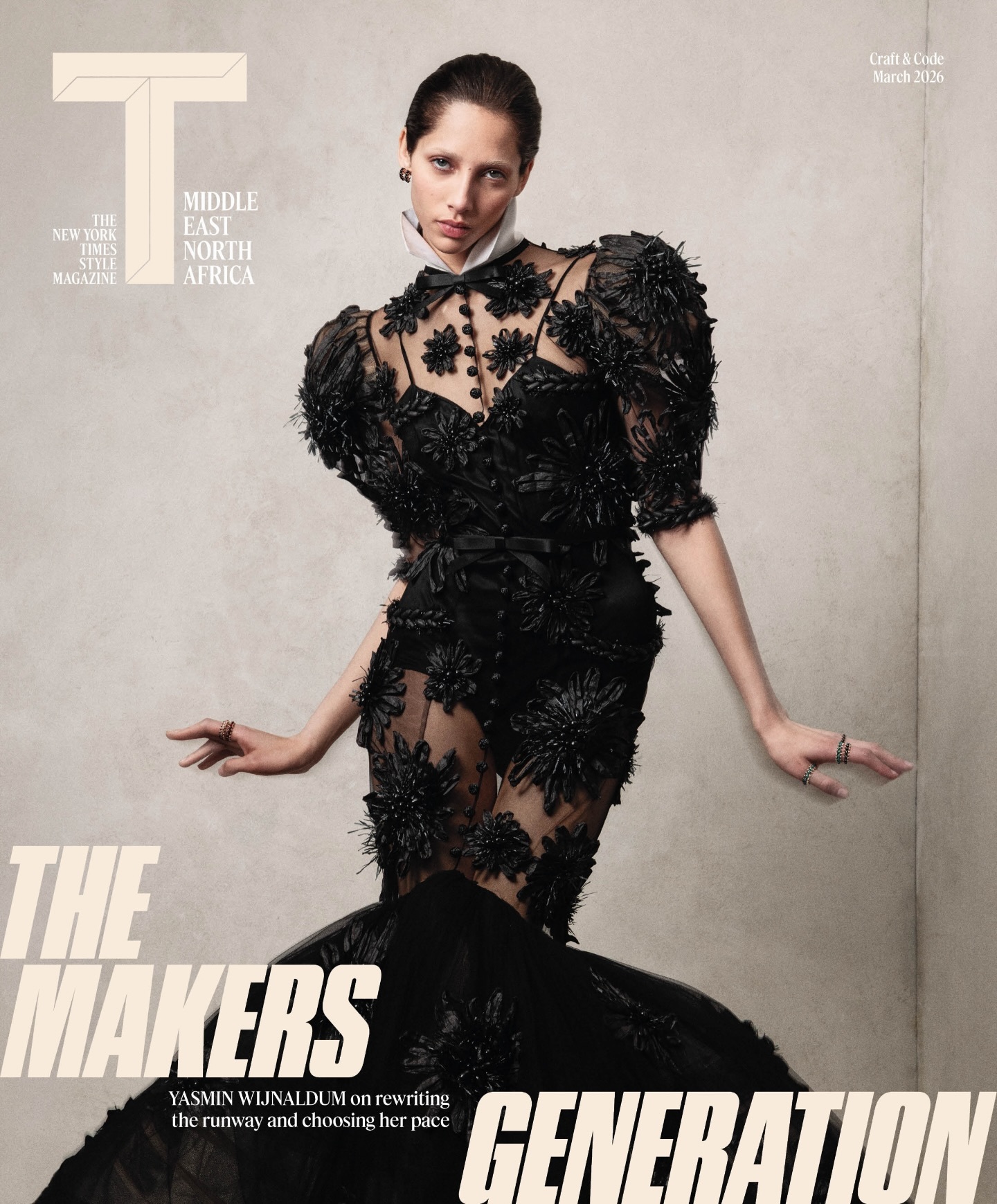 T Magazine 扩展的全新版图 !迎来了中东 & 北非地区的创刊 ,首期封面邀请到了荷兰超模 Yasmin Wijnaldum 和本土代表人物 IB Kamara 坐镇 ,其中英国 & 塞拉利昂出身的 IB Kamara 在 Dazed 担任了五年时间的主编一职 ,相信大家看到过不少由其操刀的优质创作 ,他目前也是 Off-White 品牌的创意总监 ,除此之外本期杂志还有推出一张 Cartier 的珠宝封面 .