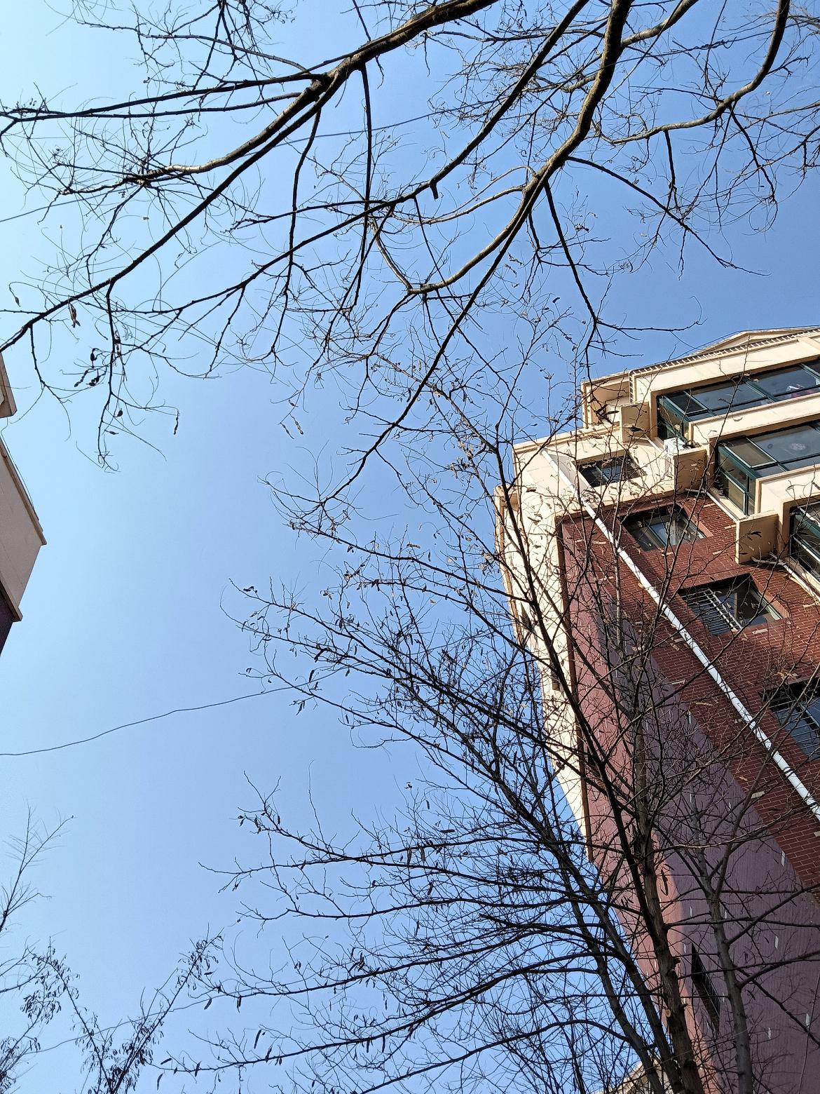 冬日暖阳下,枯枝交错,静谧而美丽。