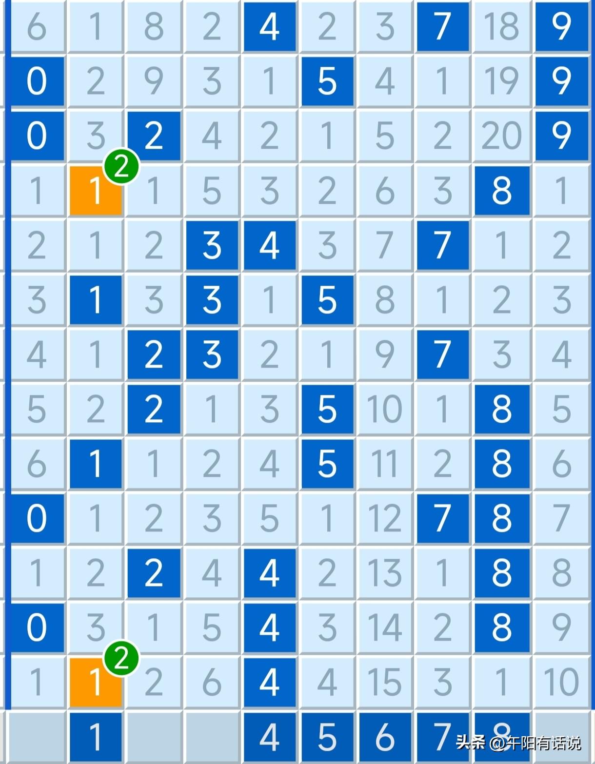 排列三26070期号码共享,重点关注大号反弹 开奖快讯 排列三26069期开奖号码为:1 1 4 012路号码走势 本期开奖号码开出了全1路号码,并且以组三形态开出,以号码1为对码,以号码4为单码。由于1路号码的全面开出,也终止了2路号码连续七期热开的局面。与此同时,0路号码在短暂回补一期之后,本期再次出现断区。 0路号码前一段时间整体走势偏热,主要表现为断区遇冷,三码和两码奖号呈现出交替热开局面。最近几期,断区出现猛烈反弹,在六期之内就开出了四期,回调趋势明显,预计接下来继续以温冷状态开出的概率较大。 本期选号复盘 本期午阳所选号码不仅成功选中了组选和直选号码,而且精选3*3*3也成功拿下奖号。本期午阳精选号码收获很大,首先胆码4精准拿下,其次百位银胆,十位铜胆,个位金胆均选中了奖号。只可惜单注精选为1-9-4,以一点之差没能精准命中。总结经验,继续加油! 组选号码关注 1,4,5,6,7,8 直选号码关注 百位号码:6,3,5,4,8 十位号码:4,9,7,1,6 个位号码:9,1,3,5,7
