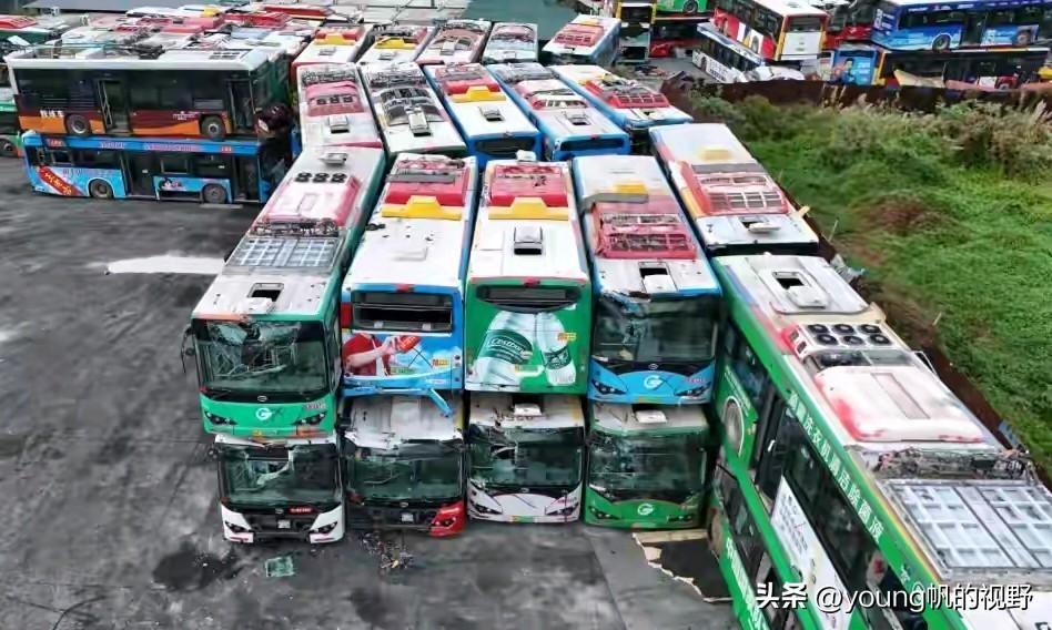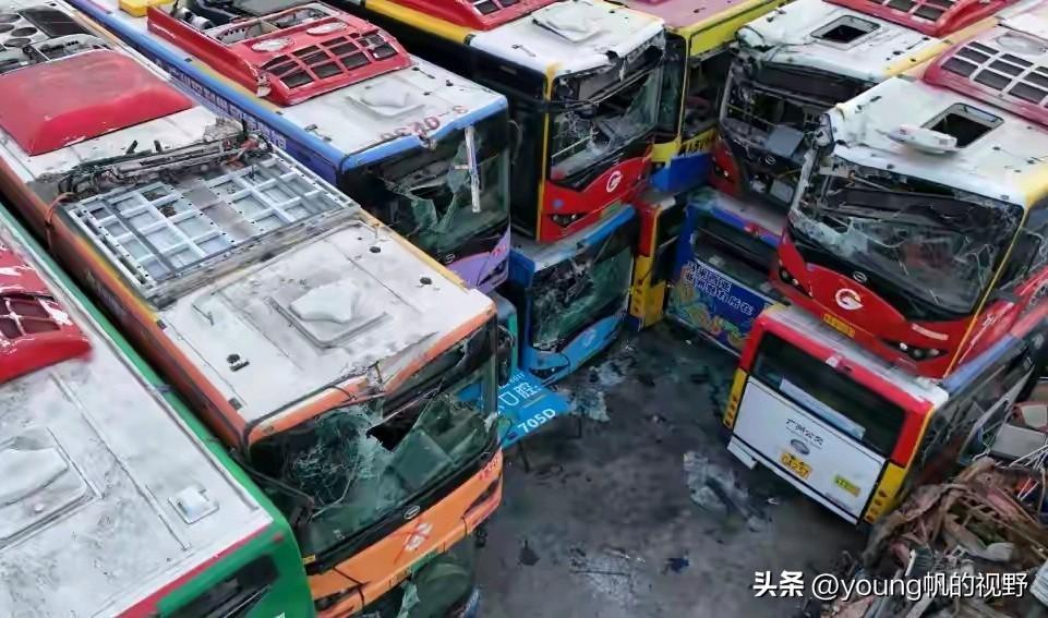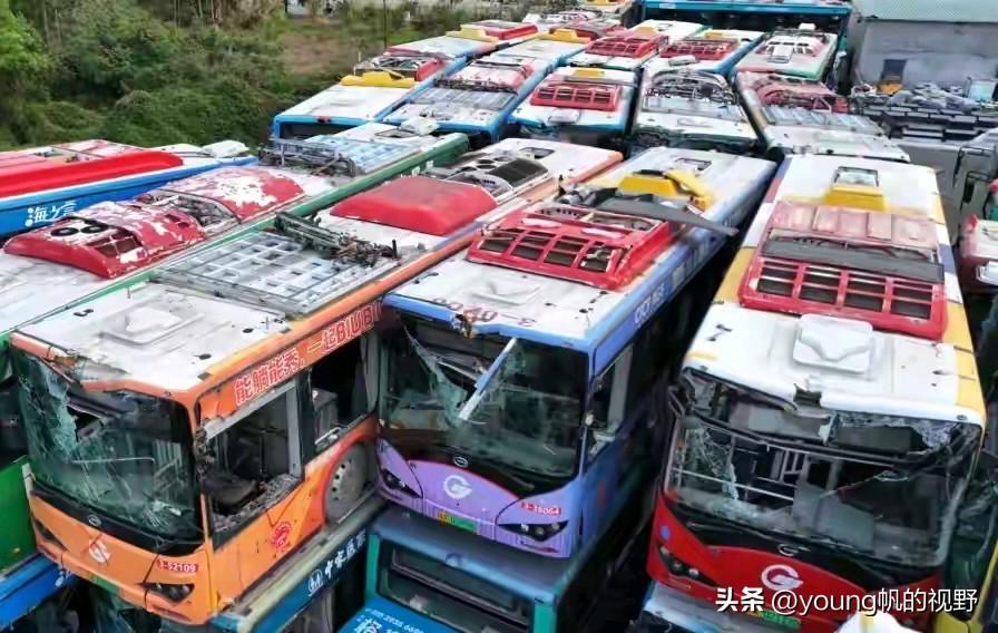 有公交迷来到汕尾的一处机动车回收公司处探访这些已经报废的广州公交。这些体积庞大的公交车竟然能够堆放的这么整齐,这也真是一门技术活。据了解的政策,现在的公交车似乎是使用了8年就要报废。不由得感叹原来时间过得真快,广州早期购买的那一批新能源公交都已经到了报废的时间了。不过使用年限8年的时间是不是有些短呢?如果是燃油机动车的话,用上个十多年应该也没问题吧?