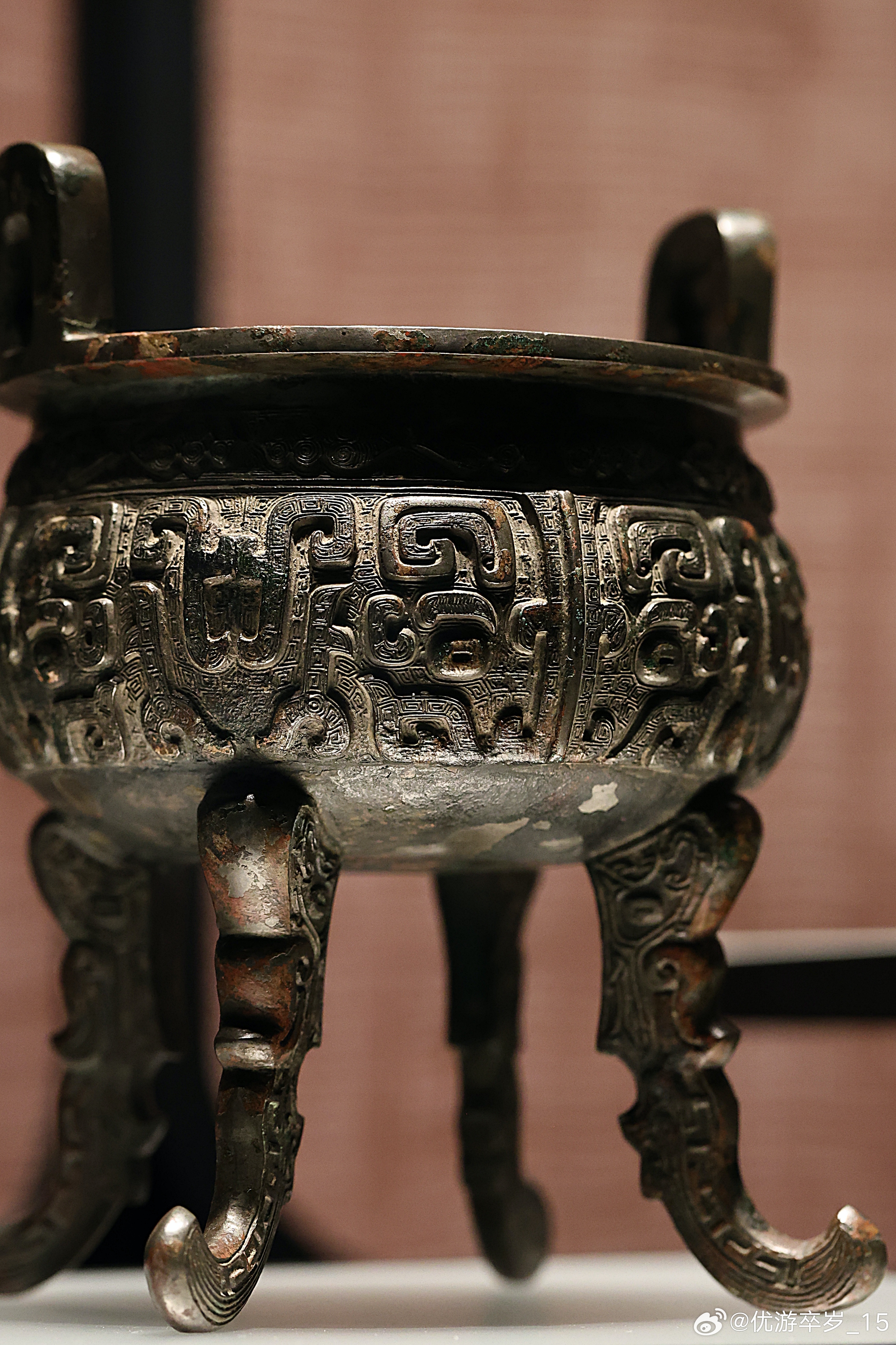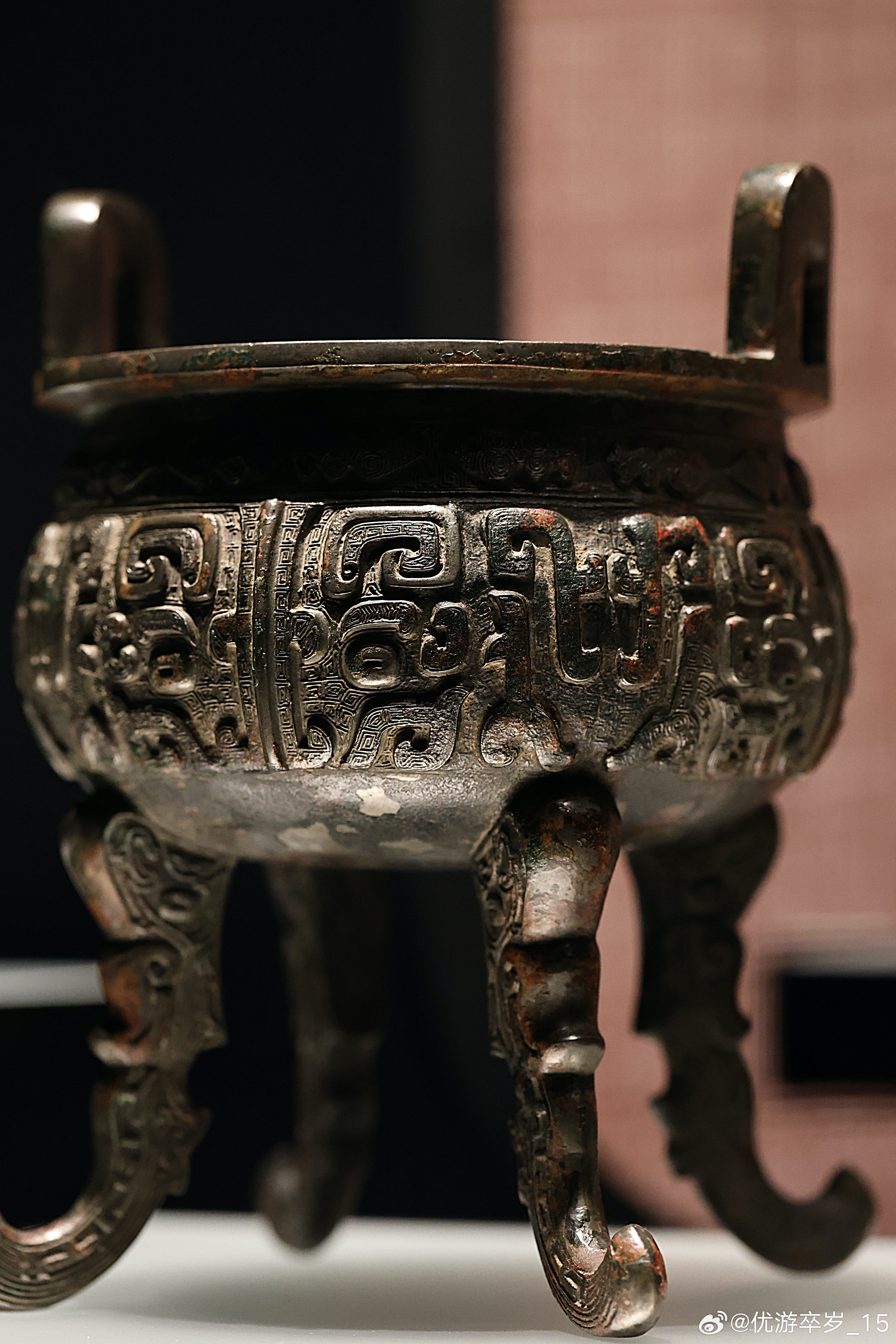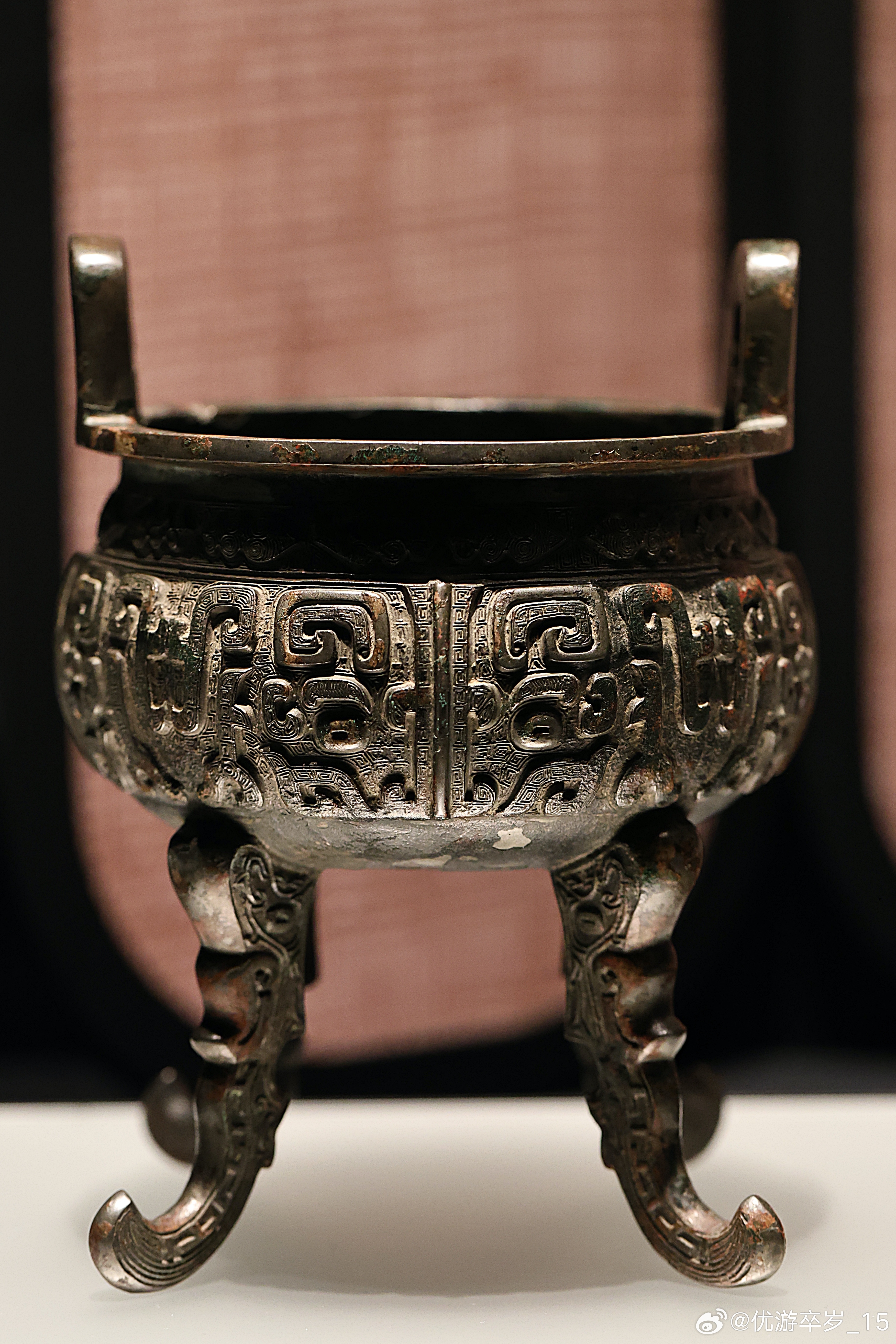 我的2026 【融古烁新-宋元明清铜器的复古与创新】潞王铜鼎·明崇祯九年故宫博物院藏此鼎融三代礼器的造型、纹饰于一体,把方鼎的四足移到圆鼎上,同时采用扁平外撇的兽体替代圆而直立的柱足或蹄足,从而打破了传统的圆鼎三足而立的形式,完成了造型上对方鼎和圆鼎的双重模仿。上海博物馆 2026.2.26约会博物馆 文物