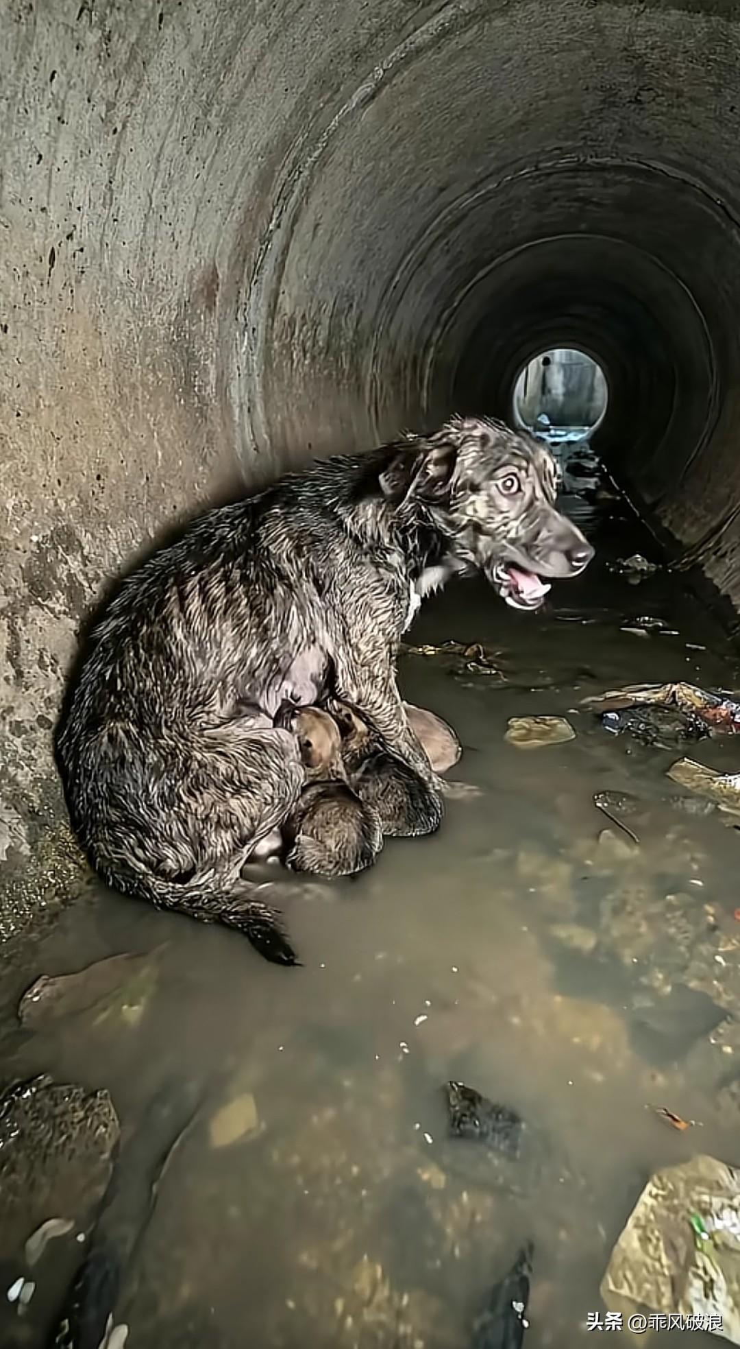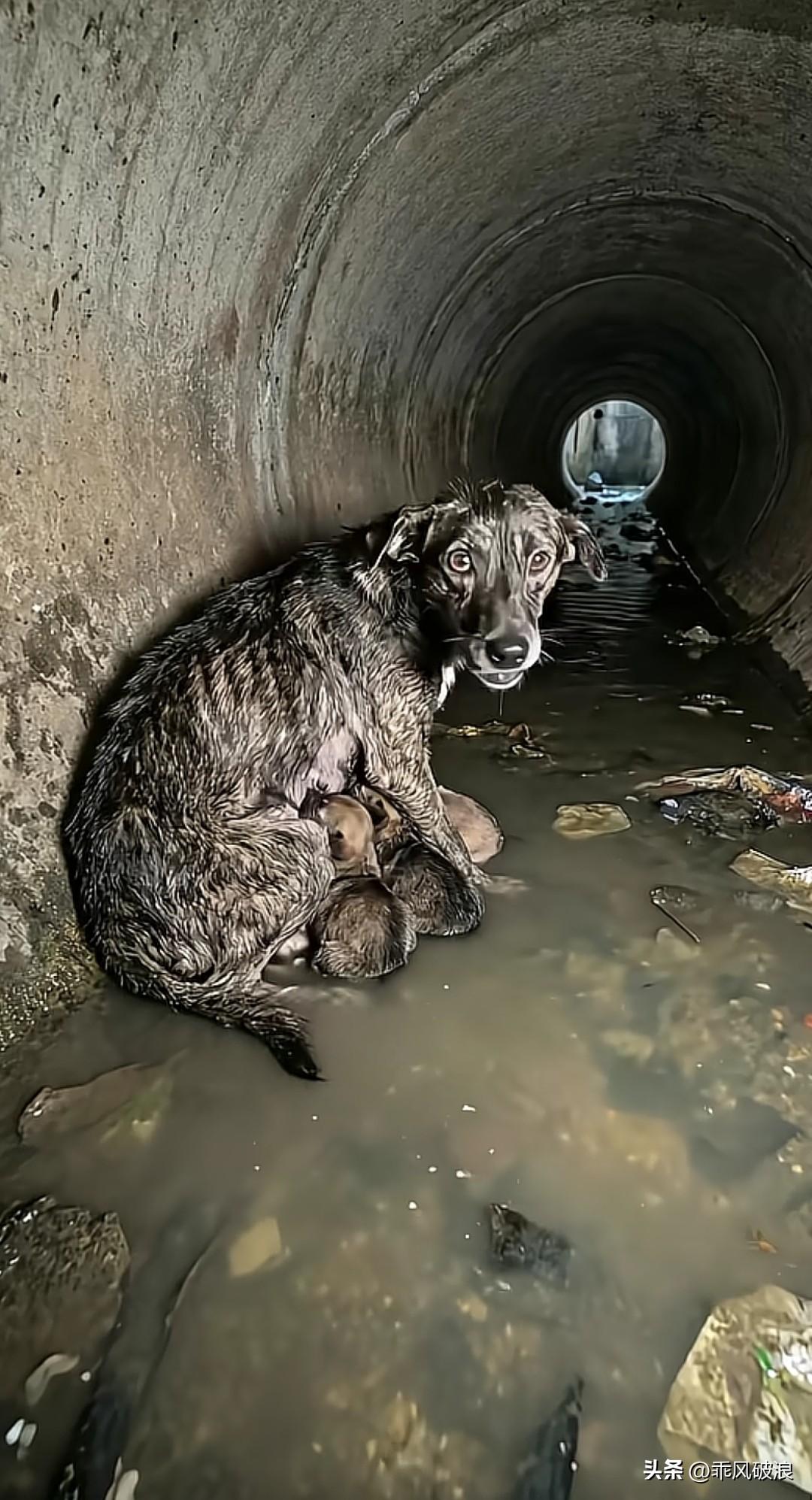 流浪狗身处积水洞中,身旁带着幼崽,却寻觅不到食物,满心皆是绝望与无奈。它悲泣不止