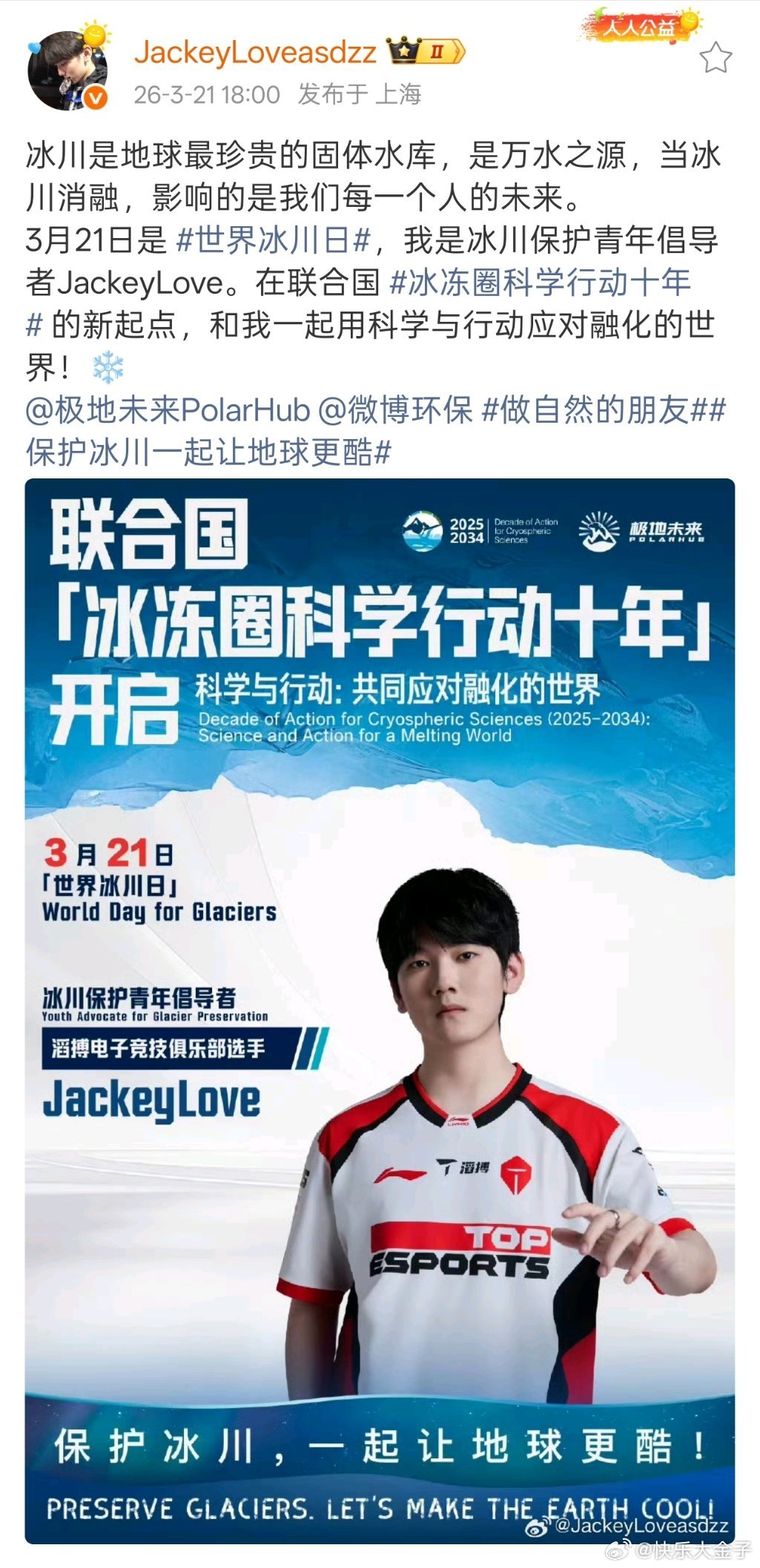 3月21日世界冰川日,3月22日世界水日。又水又冰的搁以前可是黑称,现在都拿来为