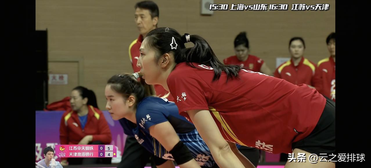 张籽萱略微改变传球思路,助力江苏晋级决赛! 尤其前3局! 今天角色完全互换,前三局天津几乎被江苏压制。尤其一传波动起伏大! 王艺竹被追发,进攻也被重点盯防,江苏彻底废掉了她这一点。 看来赛后施海荣认真总结上场失败的经验,今天江苏女排再加上主场的加持,整个焕然一新,自信心爆棚,气势上完全压制对方,越打越兴奋! 周页彤2号位获得更多球权,前面有效牵扯,终于高光了一回。 今天唐欣的一传顶得不错,副攻进攻拦网也比上场好多了。 金局吴梦洁作为核心人,几乎一点攻! 虽然中间稍有起伏,天津反扑追分,最后还是江苏笑到最后。 总决赛:沪苏对决,谁能获得本赛季总冠军?我们拭目以待!