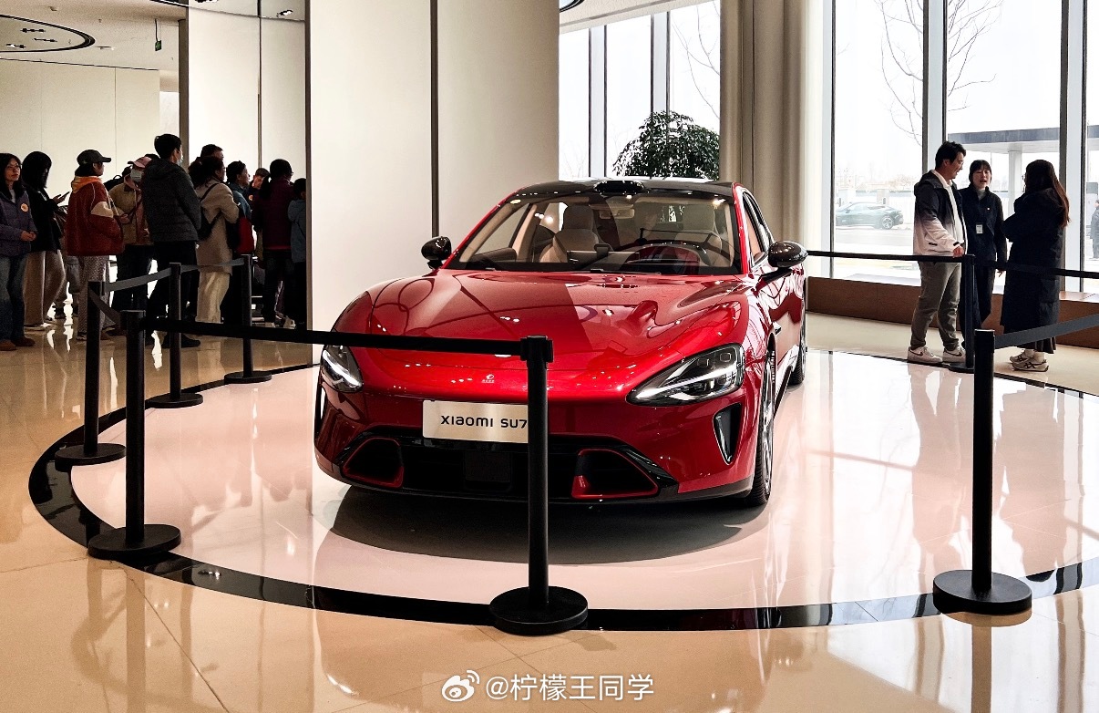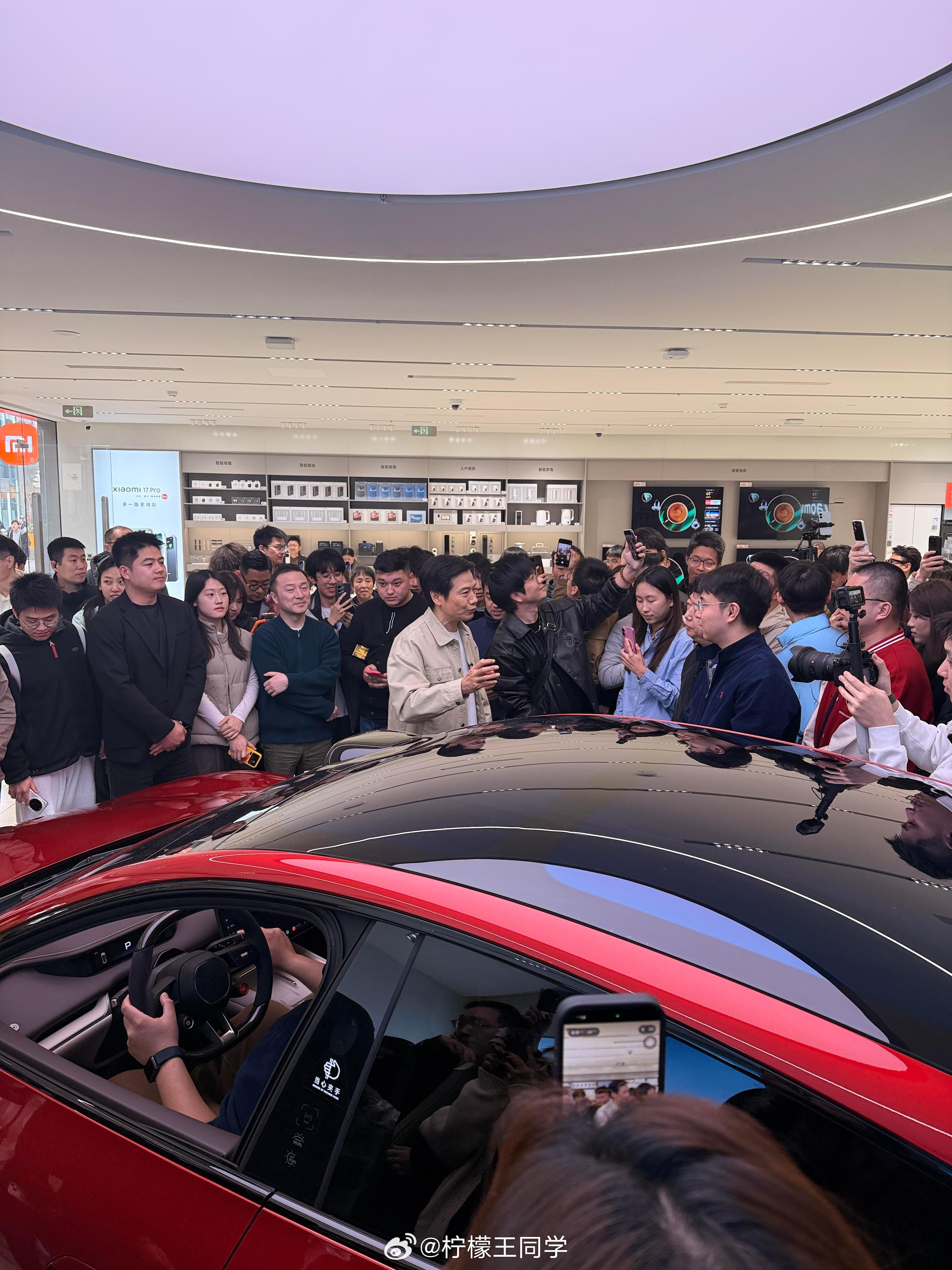 新SU7激发中国新能源车消费热今天雷总现身北京五棵松小米专卖店,现场挤满了人,都是来看小米新SU7的,车子一经发布,关注度就拉满了,据说在发布会当天,很多人都是在小米汽车店里等着公布价格,直接下订
